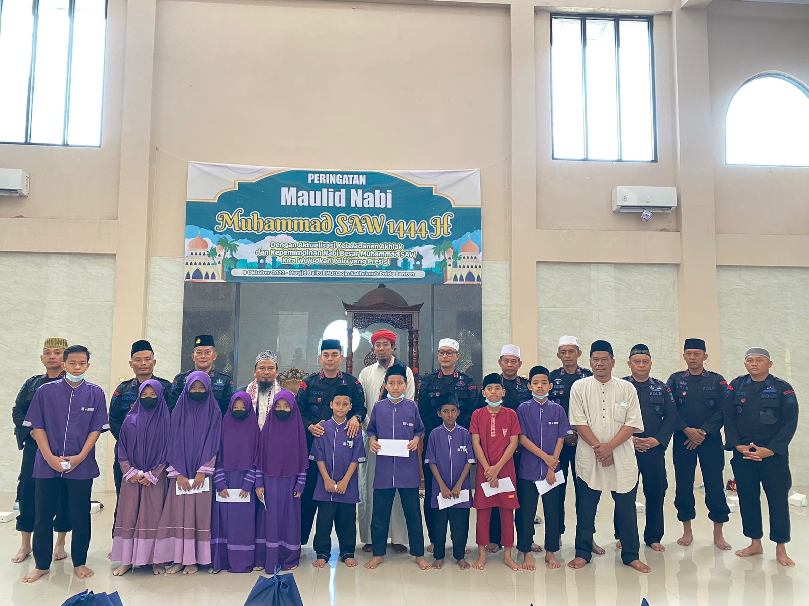 Serang – Satbrimob Polda Banten memperingati Maulid Nabi Besar Muhammad SAW 12 Rabiul Awal 1444 H / 8 Oktober 2022 M di Masjid Baitul Muttaqin Brimob Polda Banten, Jalan K.H. Amin Jasuta No.1 Serang pada Sabtu (08/10).