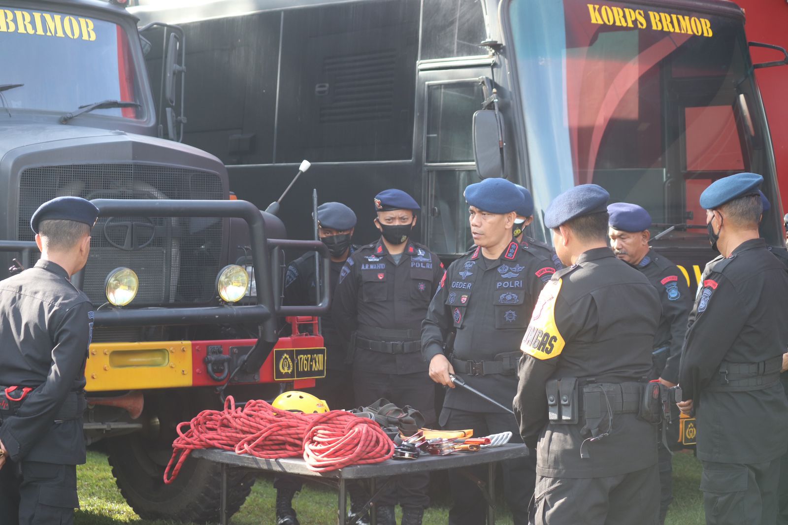 Selesai memimpin apel, Dansat Brimob mengecek seluruh peralatan, perlengkapan dan kendaraan dinas yang akan digunakan dalam pelaksanaan tugas terutama kendaraan yang dipersiapkan untuk kegiatan SAR karena saat ini wilayah Banten sedang mengalami berbagai musibah diantaranya bencana longsor dan banjir.