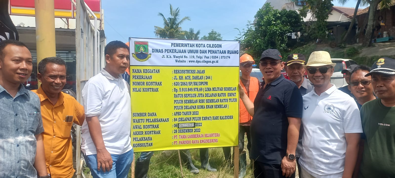 Walikota Cilegon Helldy Agustian bersama Kadis PUPR, Anggota DPRD dan tokoh masyarakat menyaksikan pemasangan papan informasi proyek perbaikan jalan KH Ahmad Dahlan / Dok