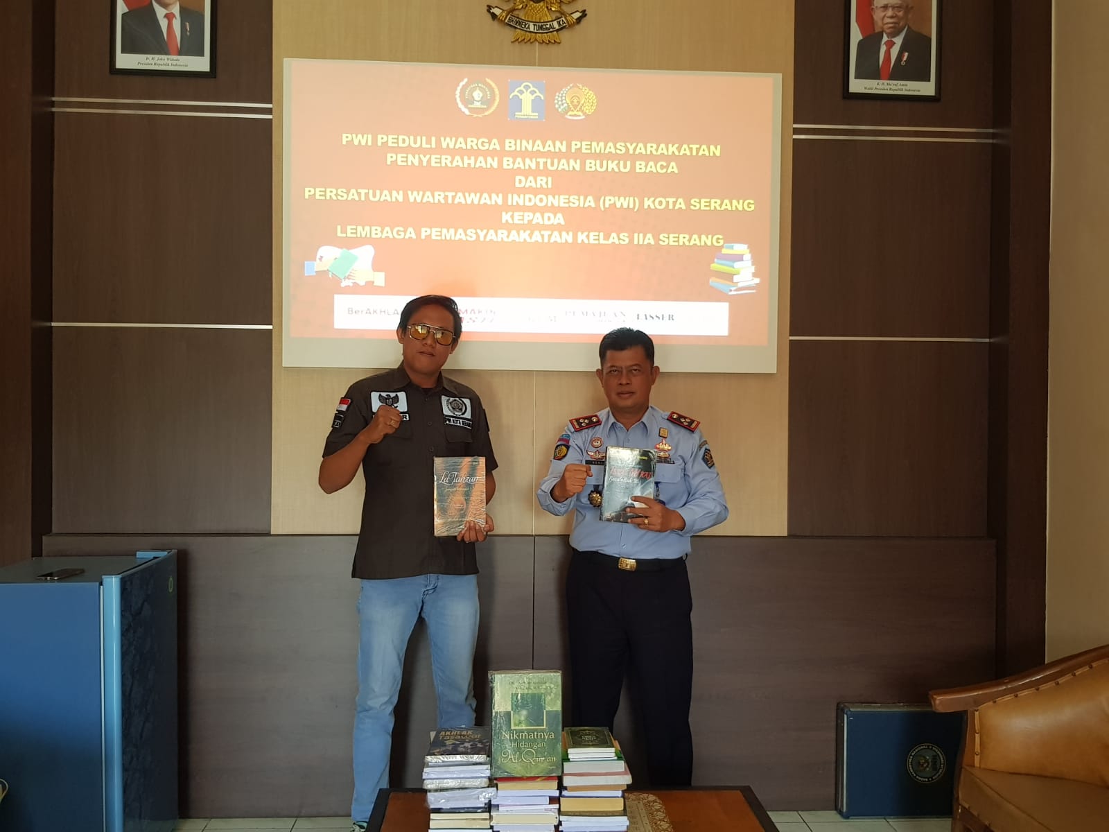 Penyerahan buku tersebut, dilakukan langsung oleh Ketua PWI Kota Serang Teguh Akbar Idham kepada Kepala Lapas Serang Heri Kusrita, Dilanjutkan dengan penyerahan secara simbolis oleh Ketua PWI Kota Serang Teguh Akbar Idham kepada perwakilan Warga Binaan.