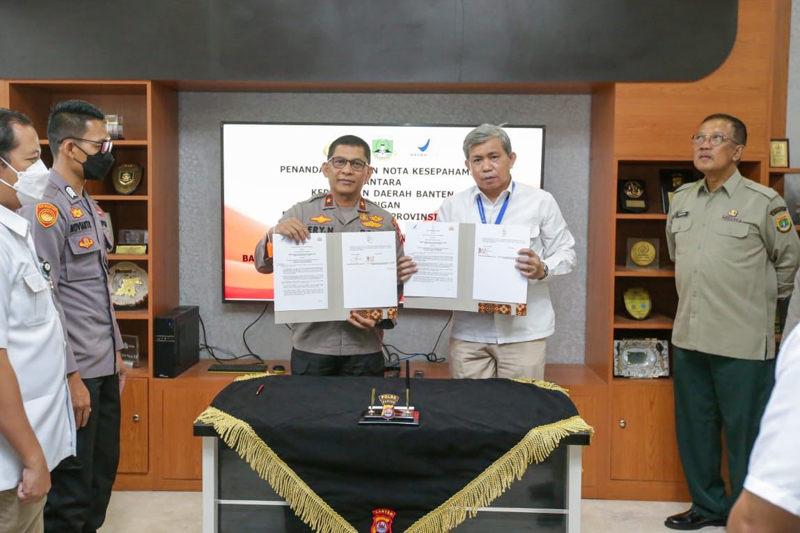 Peningkatan sinergitas dilakukan melalui Penandatanganan Nota Kesepahaman antara Polda Banten dengan Pemprov Banten terkait penyelenggaraan penanggulangan bencana di wilayah hukum Polda Banten dan penandatanganan perjanjian kerjasama antara Balai Besar BPOM terkait optimalisasi peningkatan pengawasan dan penyidikan tindak pidana obat dan makanan yang dilaksanakan di Aula Polda Banten, Jl. Syek Nawawi Al Bantani, Banjarsari, Kota Serang, Selasa (1/11/2022).