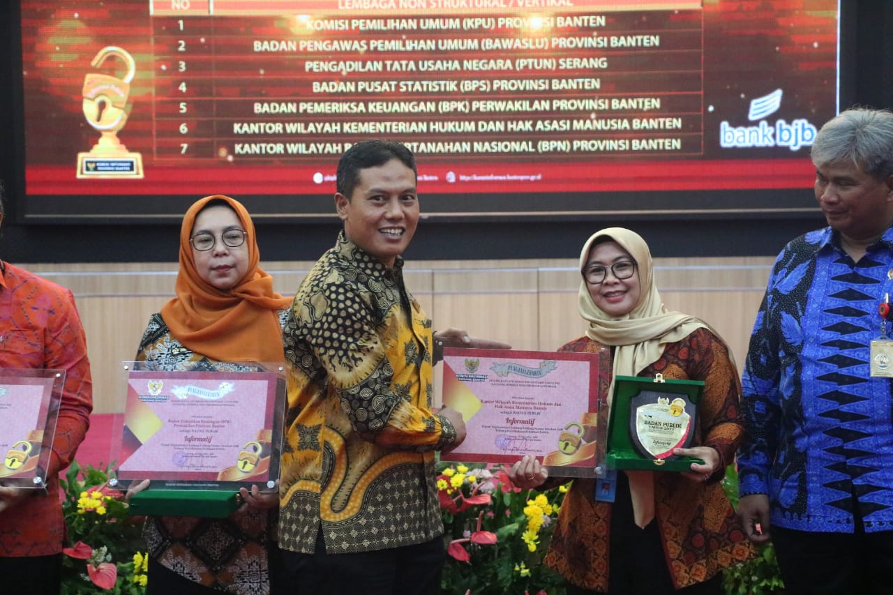 Tidak sendiri, Kanwil Kemenkumham Banten menerima Penghargaan sebagai Badan Publik ‘Informatif” bersama dengan 6 (enam) Lembaga Non Struktural/Vertikal Wilayah Provinsi Banten lainnya, diantaranya KPU Provinsi Banten, Bawaslu Provinsi Banten, BPS Provinsi Banten, BPKP Provinsi Banten, PTUN Serang dan Kanwil BPN Provinsi Banten.