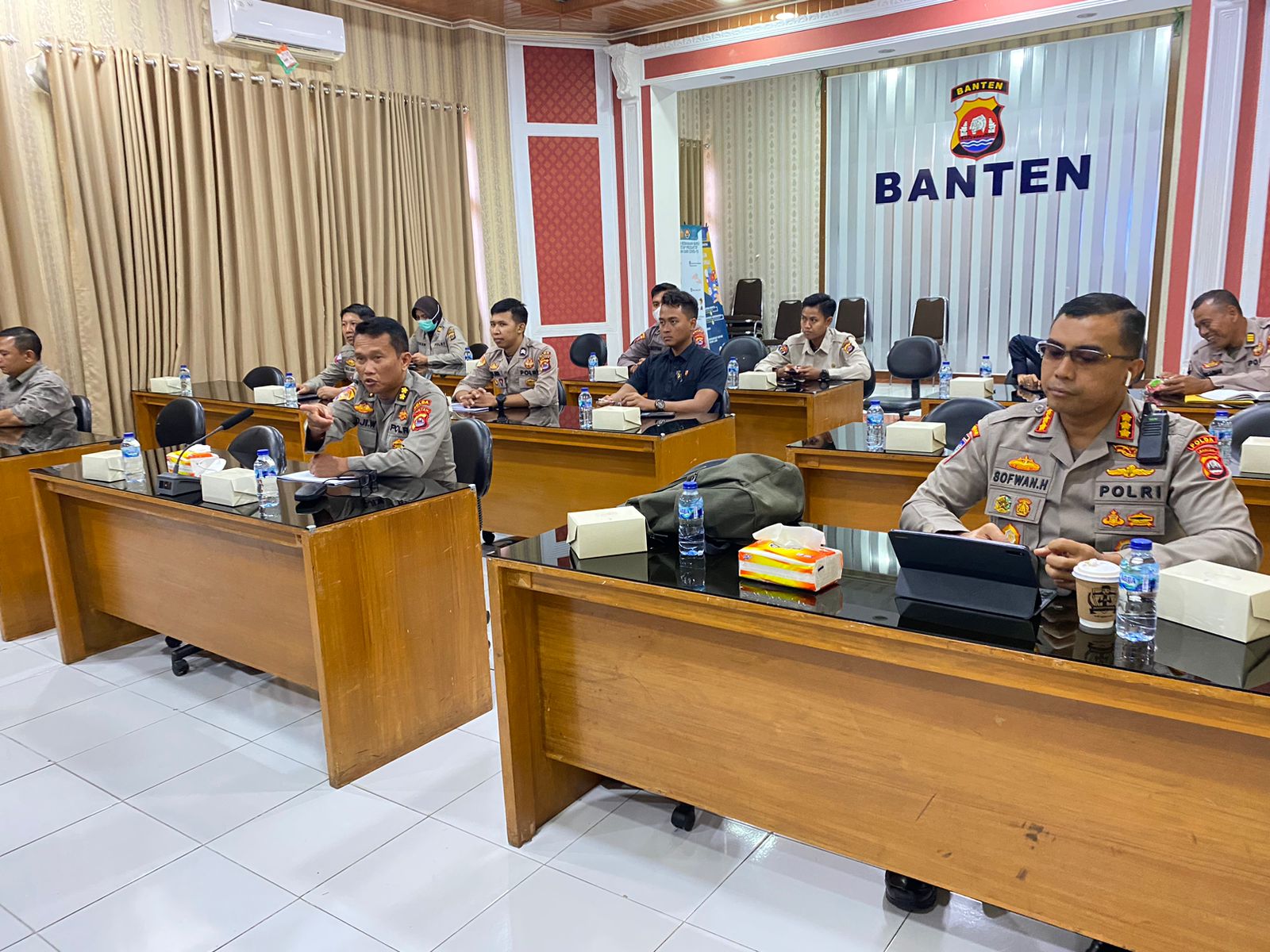 Hadir dalam kegiatan ini Dirsamapta Polda Banten Kombes Pol Murwoto didampingi Auditor Madya Itwasda Polda Banten Kombes Pol Erri Agoeng Noegraha, beserta Pejabat Utama Polda Banten.