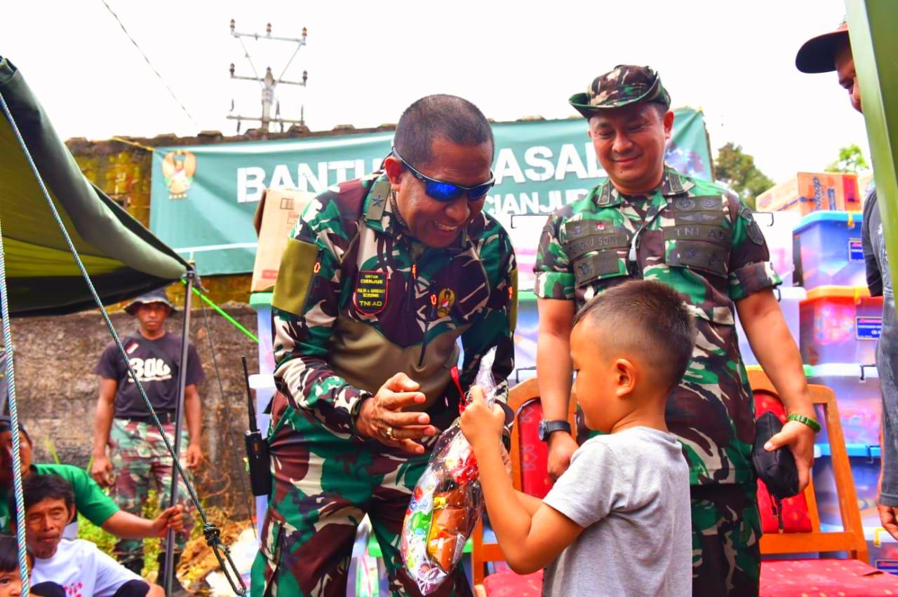 CIANJUR— Bantuan lanjutan dari Kepala Staf TNI Angkatan Darat (KASAD) Jenderal TNI Dr.Dudung Abdurachman, S.E., M.M. kepada korban Gempa Bumi di Cianjur adalah bagian Peran TNI dalam memberikan bantuan dalam penanggulangan bencana.