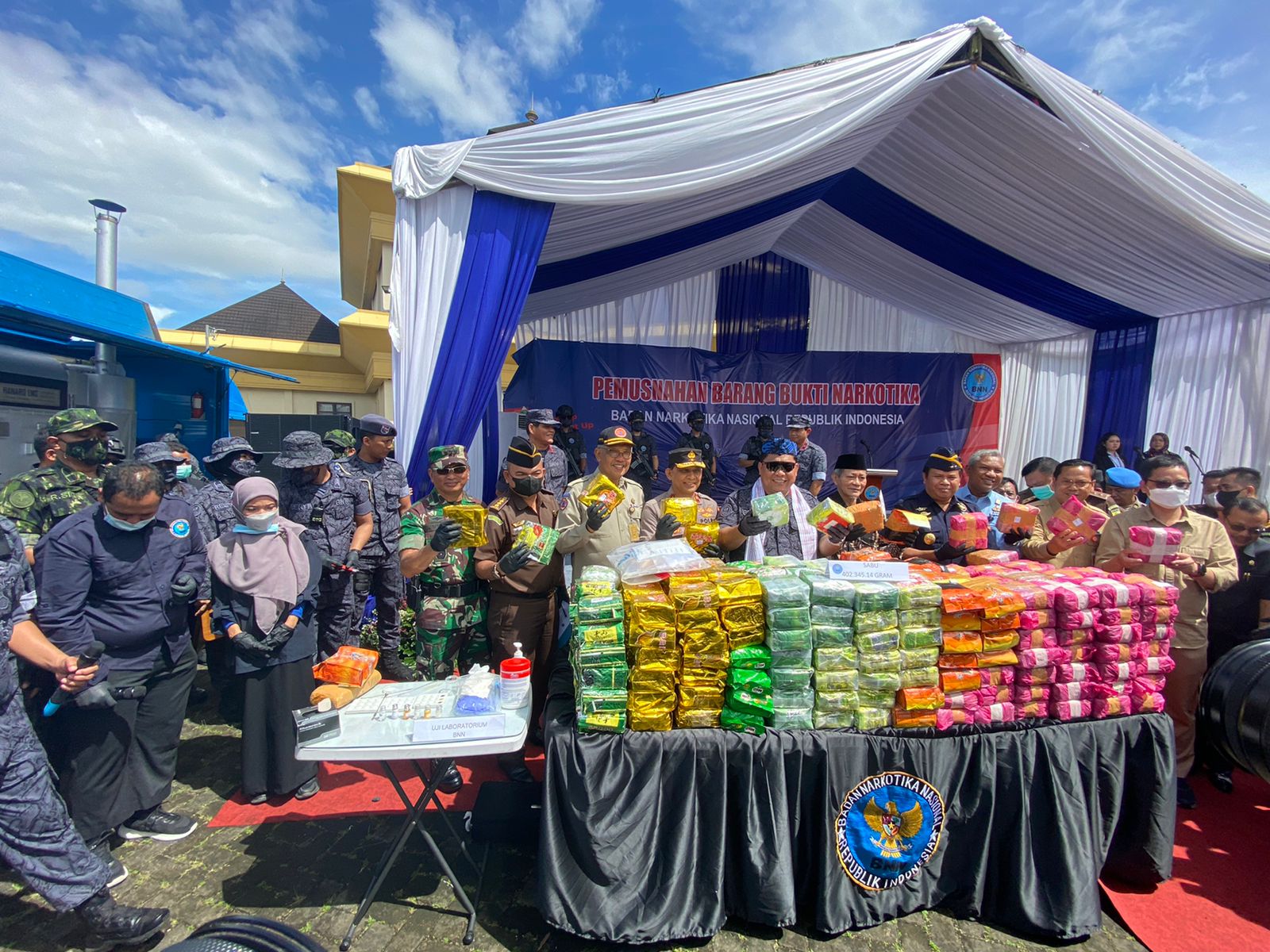 BNN RI melakukan pemusnahan barang bukti narkotika berupa sabu seberat 402,34 Kg, ganja seberat 198,05 Kg dan ekstasi sebanyak 105.290 butir. Disamping itu petugas juga memusnahkan prekursor narkotika berupa tablet sebanyak 990 butir, serbuk seberat 1,80 Kg, cairan sebanyak 8 botol serta Neo Napacin sebanyak 31 bungkus.