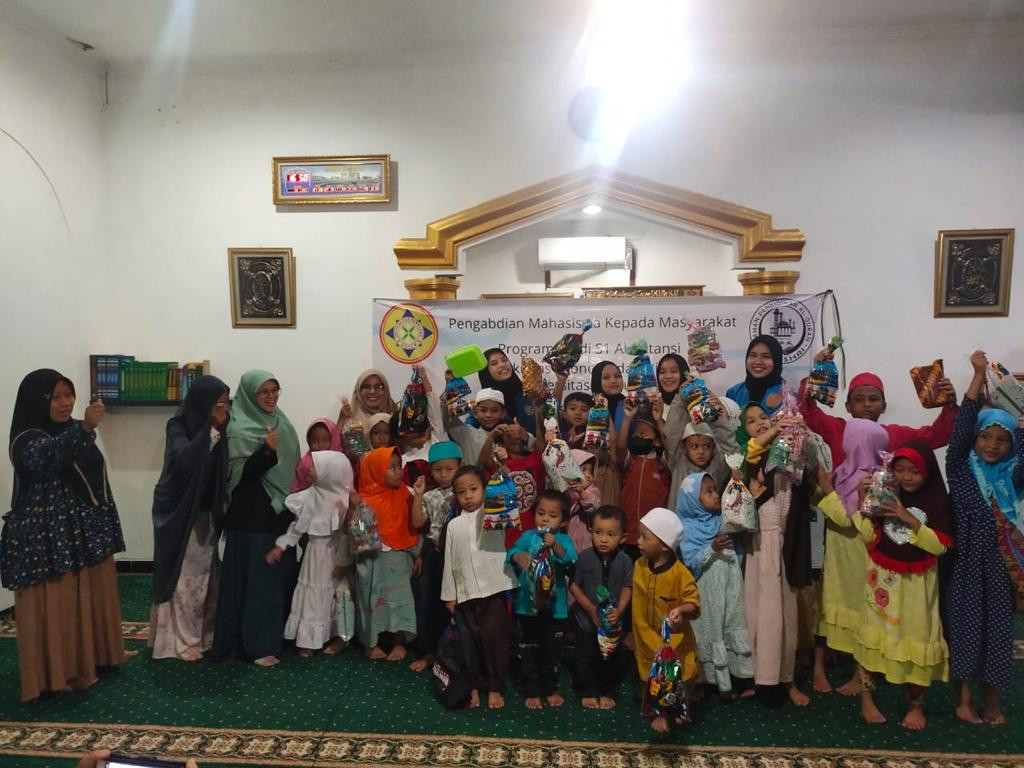 Kegiatan Pengabdian Mahasiswa Kepada Masyarakat ini diketuai oleh Wahdini yang beranggotakan Britania Reskin Brilian, Lesiana Andhini, dan Tri Wulan Septiyani serta dibimbing oleh Ibu Suciati Muanifah, S.E., M.M. selaku dosen fakultas ekonomi dan bisnis universitas pamulang. Dan dihadiri juga oleh 30 anak TPA dan 3 orang pengurus TPA.