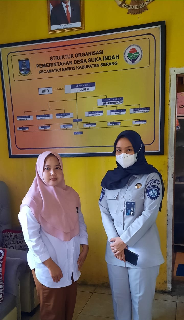 Serang, (haluanbanten.co.id) – Pada hari Selasa, tanggal 13 Desember 2022, Petugas Jasa Raharja Gerai Samsat Kramatwatu Alia Rahmadhani melakukan kunjungan ke Desa Suka Indah Kabupaten Serang. Dalam kunjungan tersebut, petugas Jasa Raharja di sambut hangat oleh Sekertaris Desa Suka Indah yaitu Ibu Embay Meumunah S.Pd. Tidak hanya bersilaturahmi, kegiatan ini bertujuan untuk mensosialisasikan mengenai program yang saat ini sedang berlangsung yaitu pemutihan denda pajak yang berlangsung sejak tanggal 18 Agustus 2022 sampai dengan 31 Desember 2022.