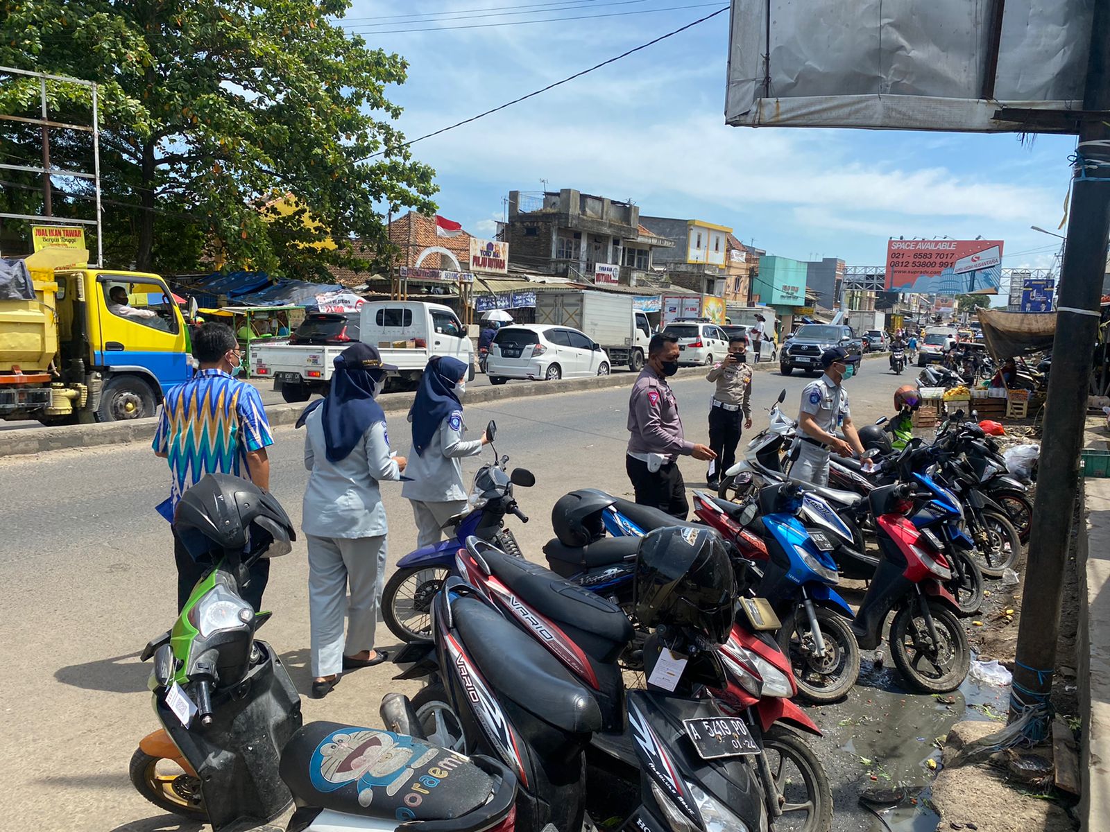 Serang, (haluanbanten.co.id) – Tim Gabungan SAMSAT Cikande sebarkan leaflet di sekitar wilayah Kabupaten serang, khususnya di RS Hermina Ciruas dan Pasar Ciruas Kabupaten Serang. Kegiatan tersebut melibatkan Petugas Jasa Raharja Samsat Cikande Cabang Banten, Pegawai UPT PPD SAMSAT Cikande serta Kepolisian yang diwakili oleh Kanit Regident Ipda Herry Priyanto.