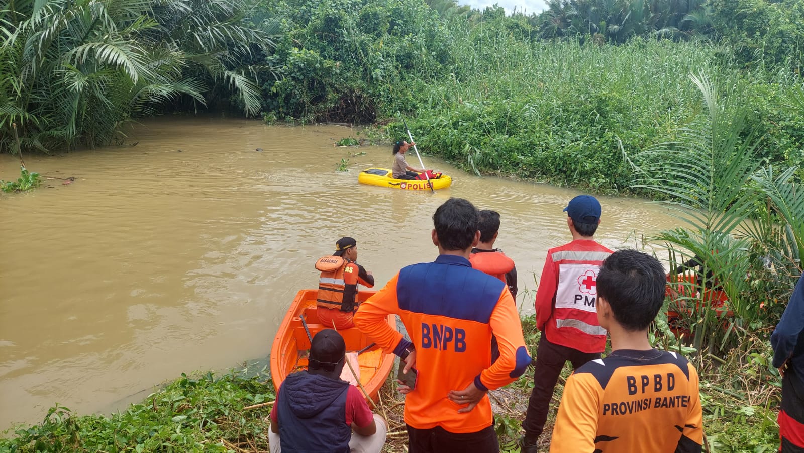 Pandeglang – Polsek Patia Polres Pandeglang menurunkan personel tambahan dalam proses pencarian korban hanyut di sungai Cipatujah Desa Tugu, Kecamatan Cisanggoma yang belum ditemukan sampai hari ini pada Senin (02/01).