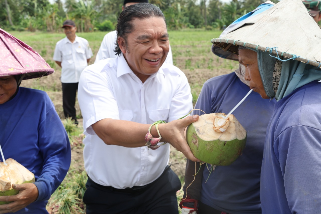 Pada kesempatan itu, Al Muktabar berbaur dengan para petani, bahkan dirinya juga ikut langsung memanen bawang merah.