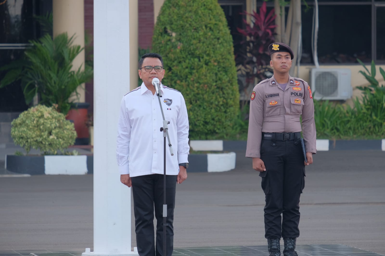 Apel pagi dihadiri Wakapolda Banten Brigjen Pol Drs. Ery Nursatari didampingi Karo Ops Polda Banten Kombes Pol Dedi Suhartono serta PJU Polda Banten.