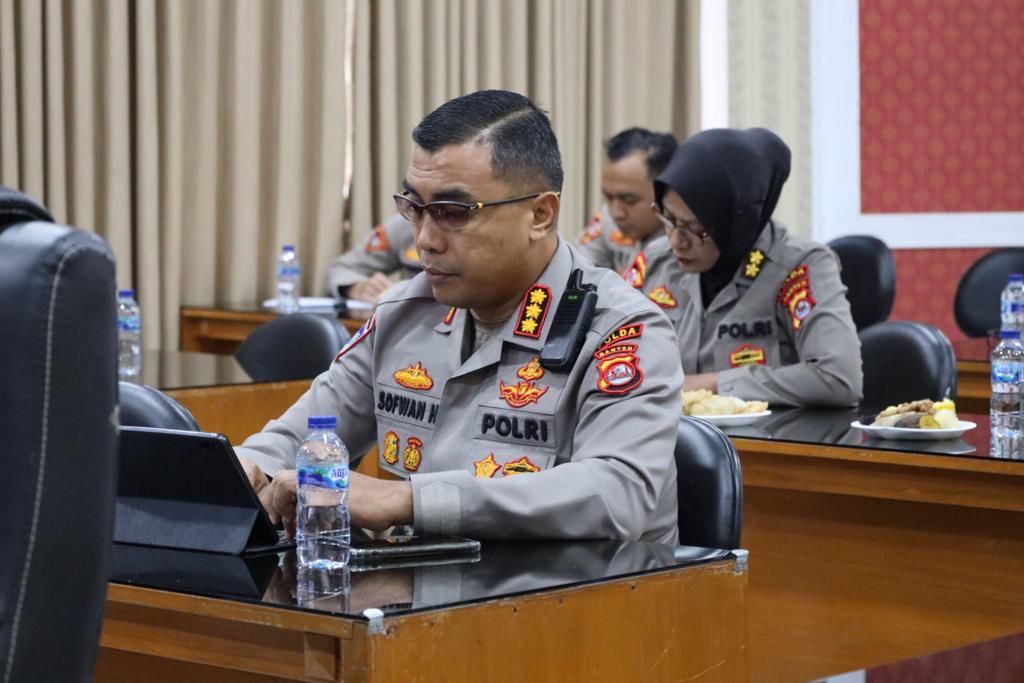 Serang – Polda Banten melaksanakan analisa dan evaluasi (Anev) mingguan terkait gangguan keamanan, ketertiban masyarakat (Kamtibmas) secara virtual dengan Polres jajaran di Ruang Vicon Polda Banten pada Senin (06/01).
