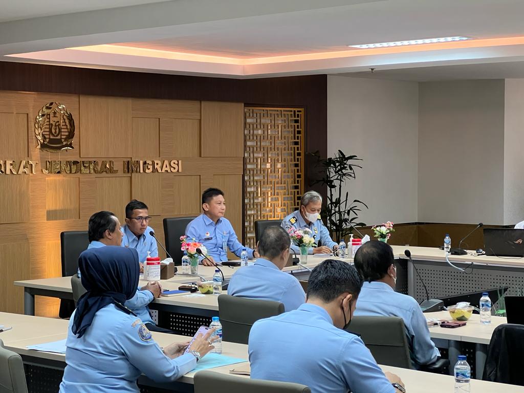 Rapat ini dilaksanakan di Ruang Rapat I Direktorat Kerjasama Keimigrasian Lantai 12 Direktorat Jenderal Imigrasi dengan diikuti oleh Perwakilan Analis Keimigrasian Ahli Utama, Direktur Kerjasama Keimigrasian Direktorat Jenderal Imigrasi, Kepala Pusat Teknis dan Kepemimpinan Badan Pengembangan Sumber Daya Manusia, Kepala Divisi Keimigrasian Kantor Wilayah Kemenkumham Banten, Kepala Divisi Keimigrasian Kantor Wilayah Kemenkumham Gorontalo, Kepala Divisi Keimigrasian Kantor Wilayah Kemenkumham Nusa Tenggara Timur, Kepala Bagian Umum Direktorat Jenderal Imigrasi, Kepala Bagian Program dan Pelaporan Direktorat Jenderal Imigrasi, Sub Koordinator Protokol Kemenkumham dan Perwakilan Direktorat Jenderal Imigrasi.