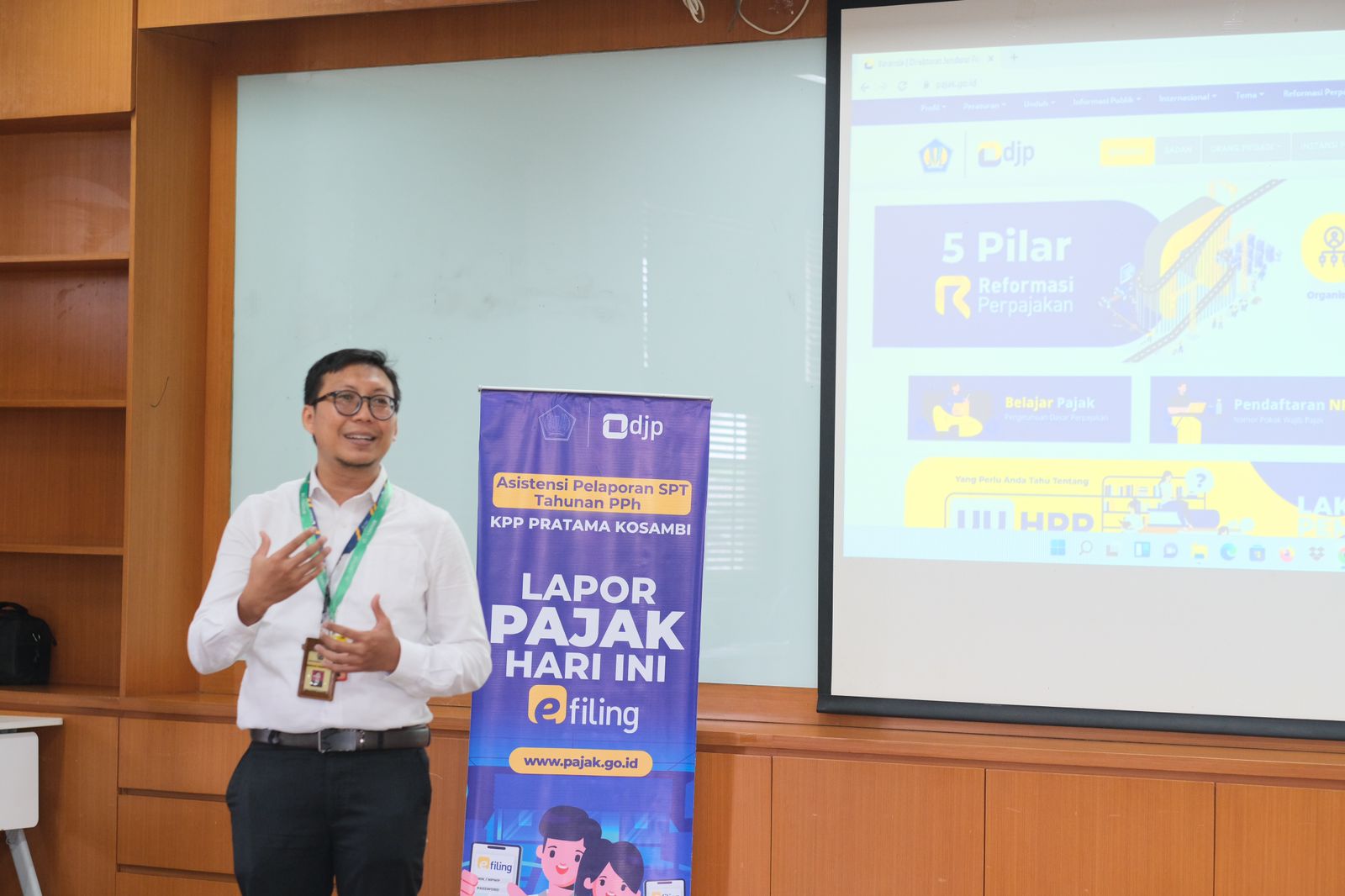 Acara dilanjutkan dengan presentasi mengenai pelaporan SPT Tahunan dan pemadanan NIK dan NPWP oleh penyuluh pajak ahli pertama KPP Pratama Kosambi Susilo.