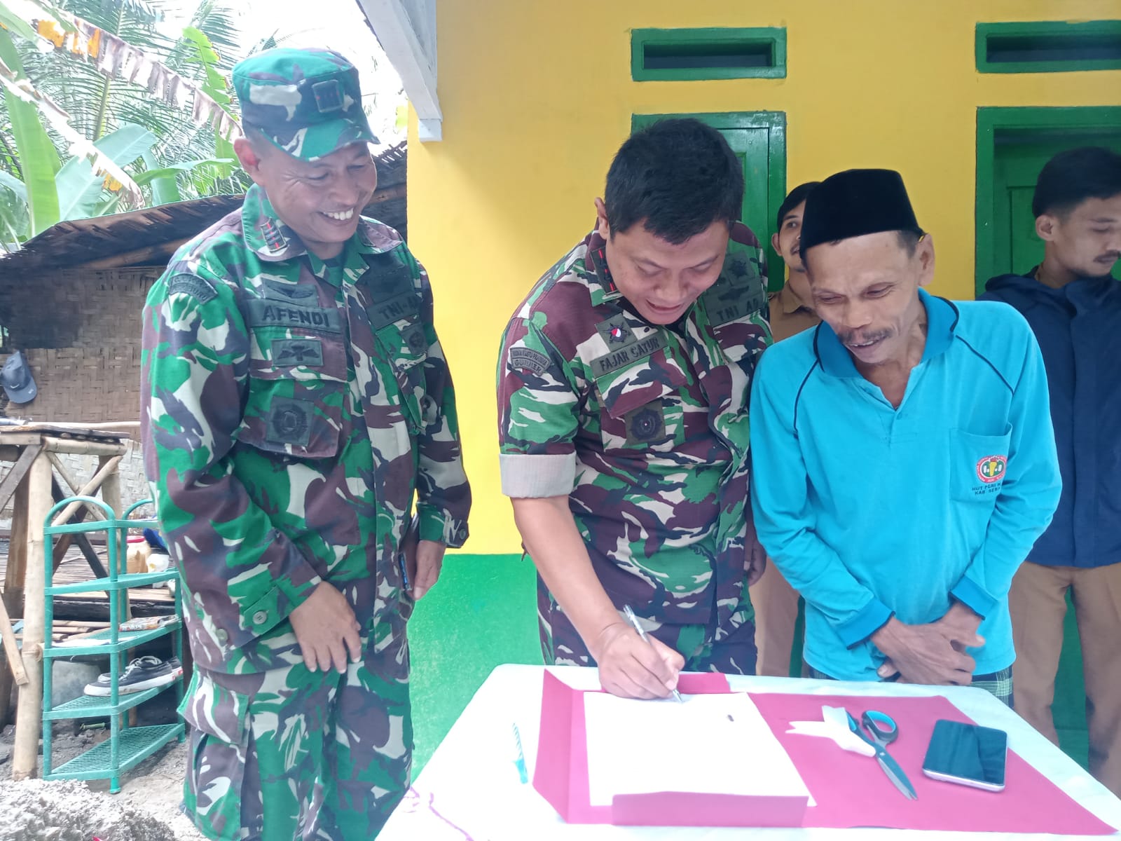 Penyerahan kunci rumah itu ditandai dengan pemotongan pita yang turut disaksikan Danramil 0602-13/Padarincang,Camat Padarincang, Kepala Desa Batu kuwung, Babinsa serta tokoh masyarakat setempat.