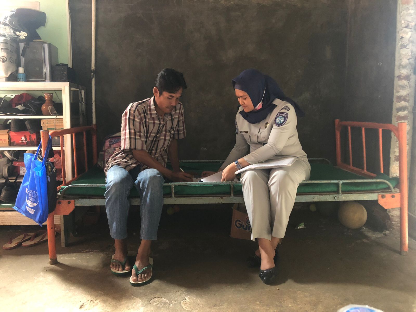 Petugas Jasa Raharja Samsat Gerai Kepandean, Vinny Nurina melakukan survey ahli waris kejadian korban kecelakaan bernama Asfar Khoirul Firadaus (15) yang mengalami kecelakaan Lalu Lintas Pada Hari Minggu bertempat di Jalan Raya TAKARI tepatnya di Kp. Cigabus Jalan Kel. Taktakan Kec. Taktakan Kota Serang .