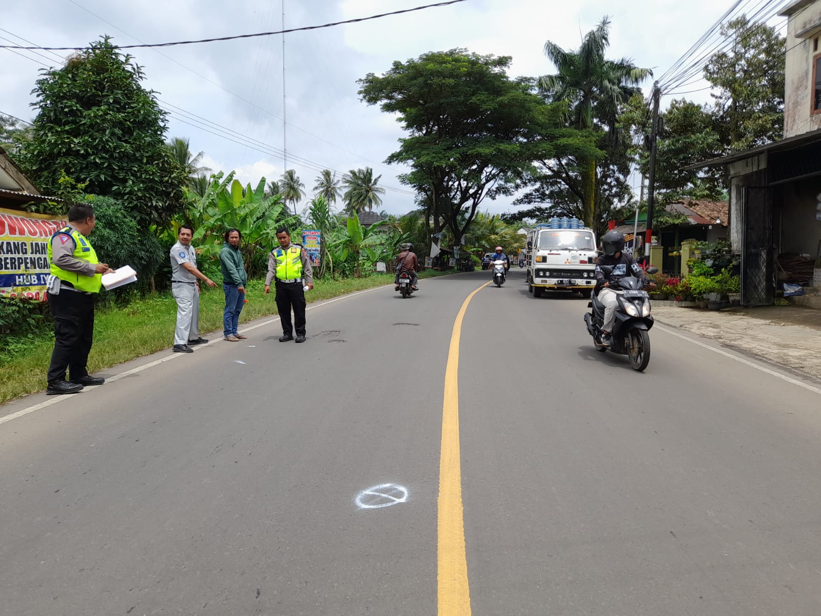 Lebak, (haluanbanten.co.id) – (27/02) – Petugas Samsat Lebak Adytia Nugraha melakukan survei tempat kejadian perkara kecelakaan lalu lintas bersama Bripka M Andika dan Briptu Yoga dari Tim Laka Polres Lebak.
