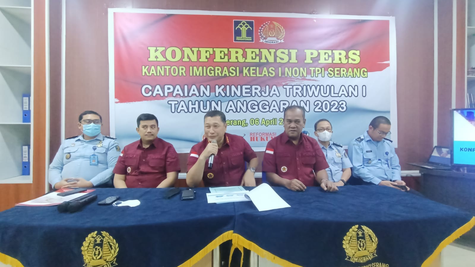 SERANG, (Haluanbanten.co.id) – Kantor Imigrasi Kelas I Non TPI Serang gelar konferensi pers terkait capaian kinerja triwulan I tahun anggaran 2023. Kamis, (06/04).