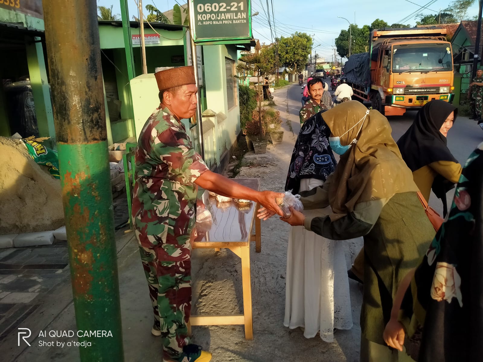 “Alhamdulillah sore ini kami keluarga besar Koramil 0602-21/Kopo telah melaksanakan pembagian takjil kepada masyarakat pengguna jalan, tepatnya yang melintas di depan Koramil ini,” jelas Kapten Inf Sudarsono yang juga ikut membagikan takjil.