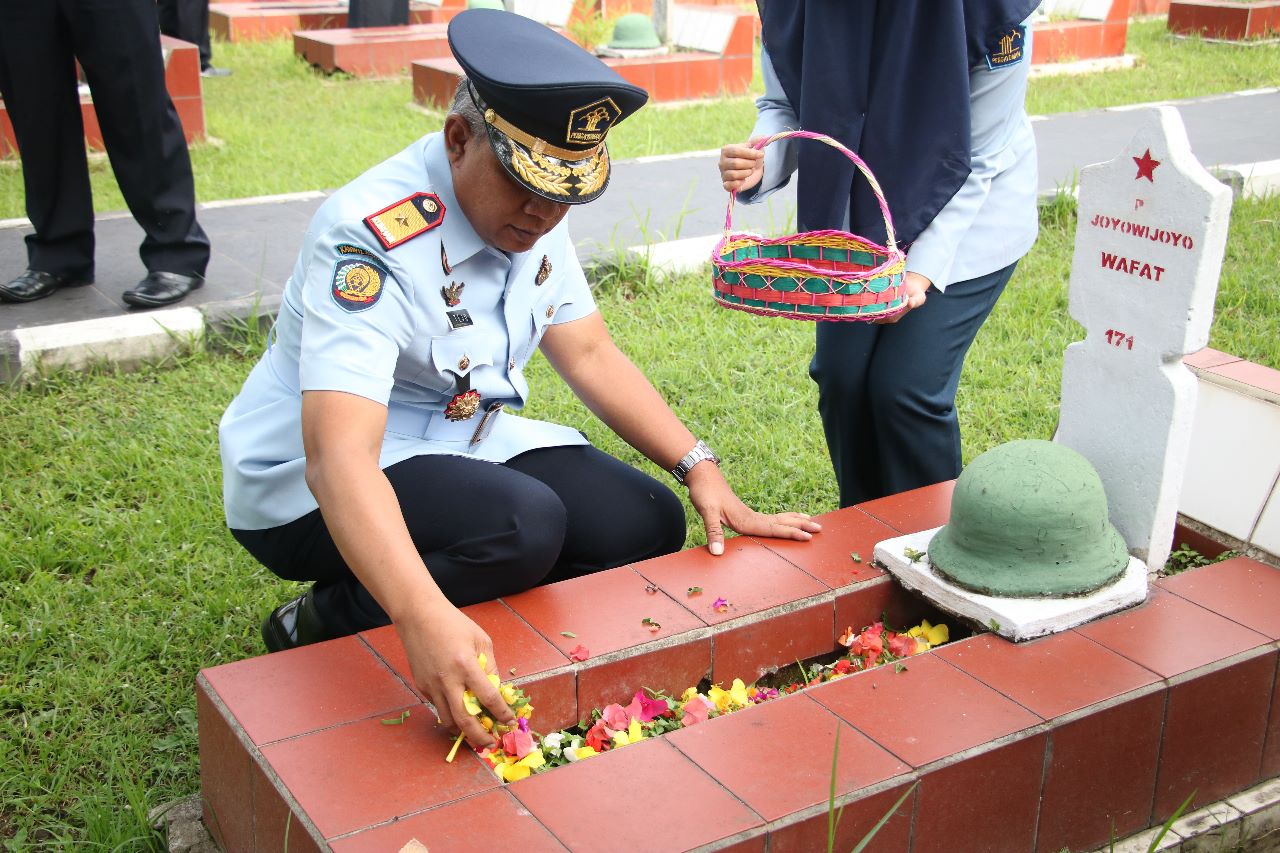 Setelah pelaksanaan upacara selesai, Tejo Harwanto selaku Kakanwil Kemenkumham Banten beserta jajarannya melaksanakan tabur bunga pada beberapa makam pahlawan yang ada di Taman Makam Pahlawan Ciceri Serang.