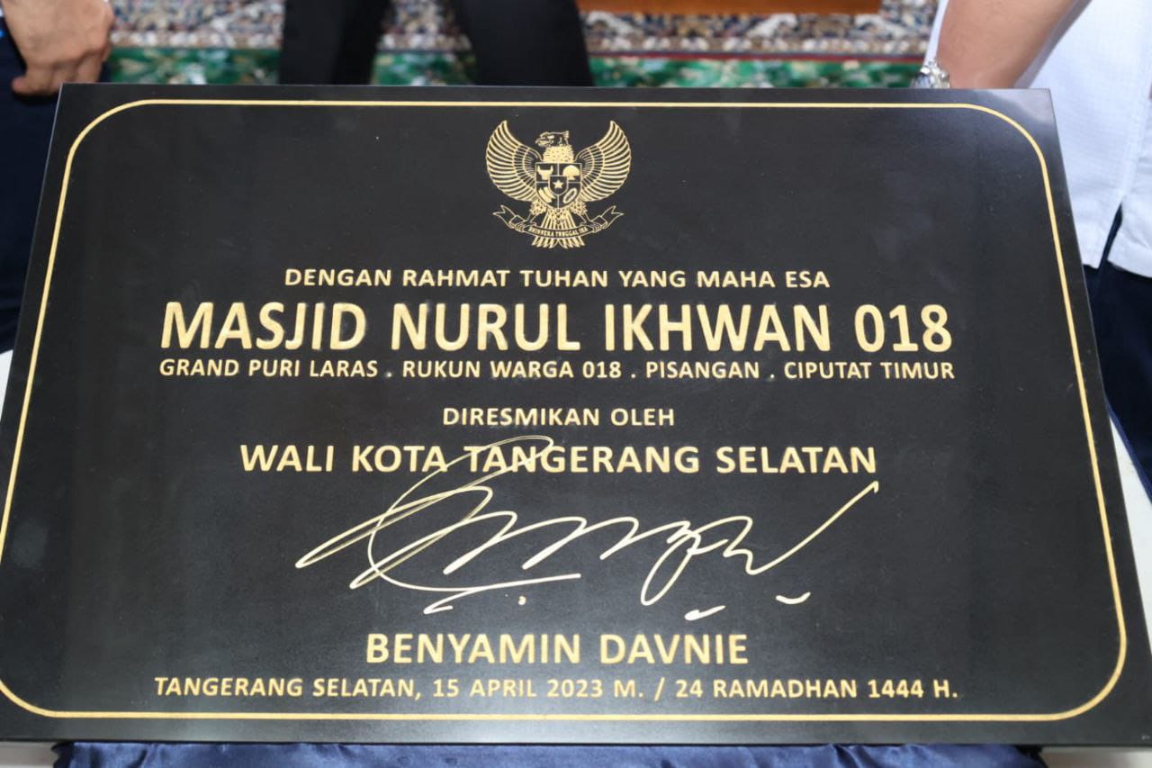 CIPUTAT TIMUR, (haluanbanten.co.id) – Wali Kota Tangerang Selatan Benyamin Davnie meresmikan Masjid Nurul Ikhwan, di Pisangan, Ciputat Timur, pada Sabtu (15/04).