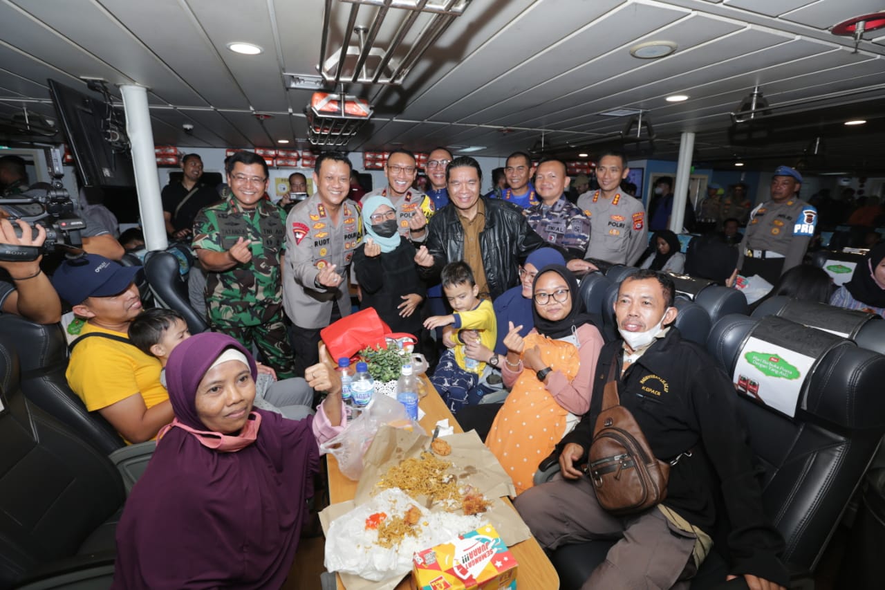 Pada kesempatan tersebut, Al Muktabar menyapa dan berbincang langsung dengan para pemudik yang akan masuk ke dalam kapal.
