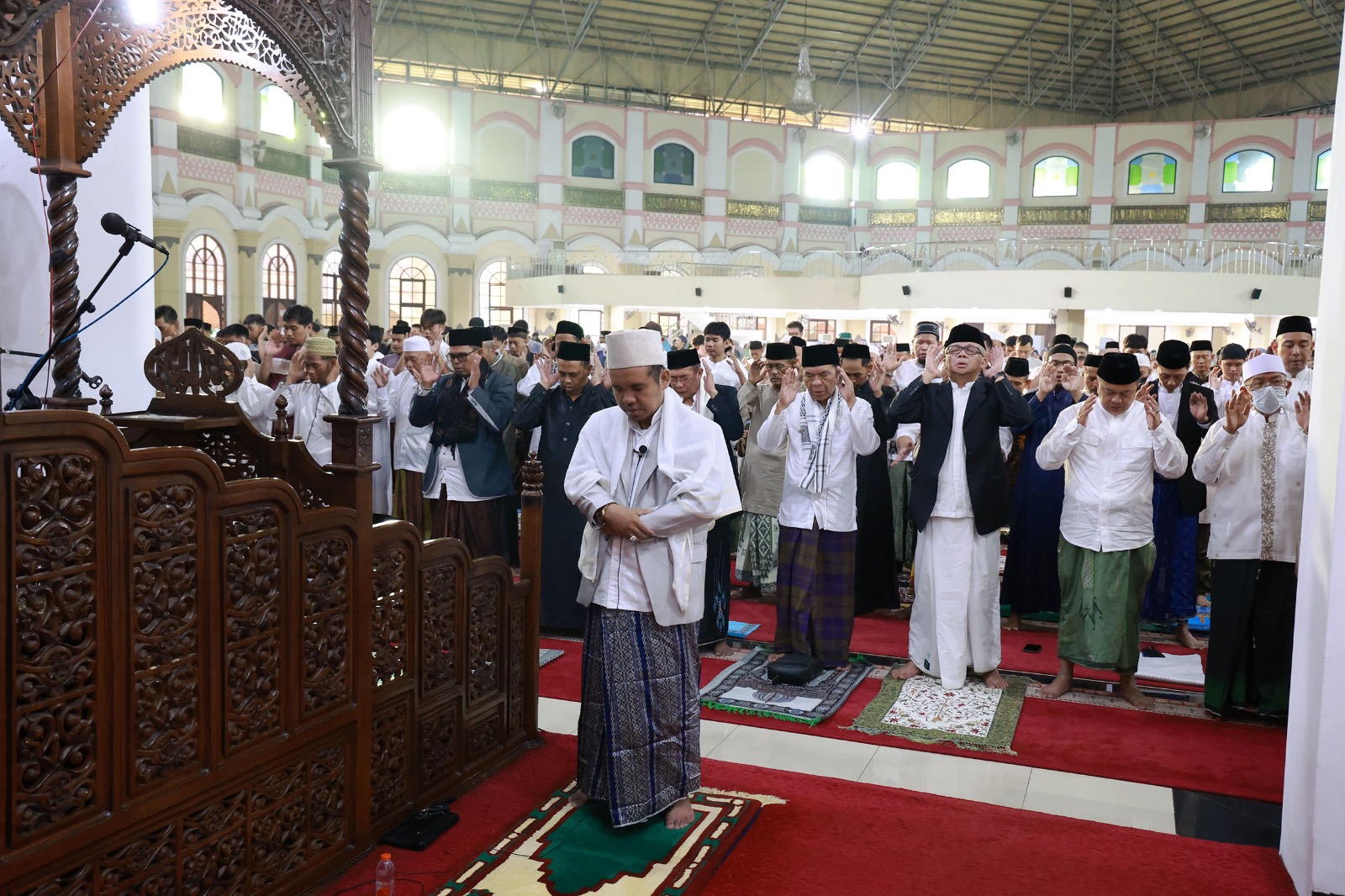 Penjabat (Pj) Gubernur Banten Al Muktabar melaksanakan Salat Idul Fitri 1444 H/2023 M di Masjid Raya Al Bantani, KP3B Curug, Kota Serang, Sabtu (22/4/2024). Turut berjamaah, Kepala Perwakilan Bank Indonesia Provinsi Banten Imaduddin Sahabat, para Kepala Organisasi Perangkat Daerah (OPD) Provinsi Banten, serta warga masyarakat sekitar.