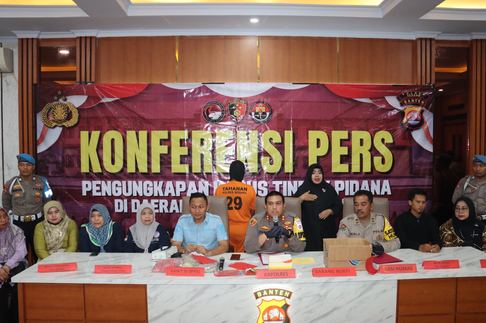 “Jadi hasil penyelidikan petugas, pelaku dapat ditangkap kurang dari 12 jam di rumah kontrakannya di wilayah Walantaka, Kota Serang,” jelas Kapolres Serang AKBP Yudha Satria, saat menggelar presscon di aula Mapolres Serang, Jum’at (28/4/2023).