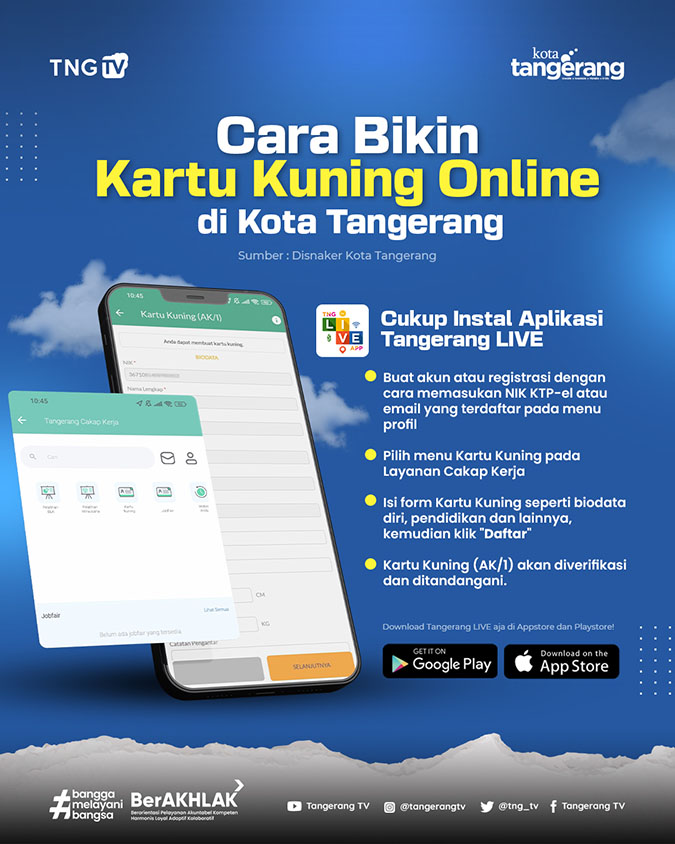 Berikut cara membuat Kartu Kuning Online di Kota Tangerang;