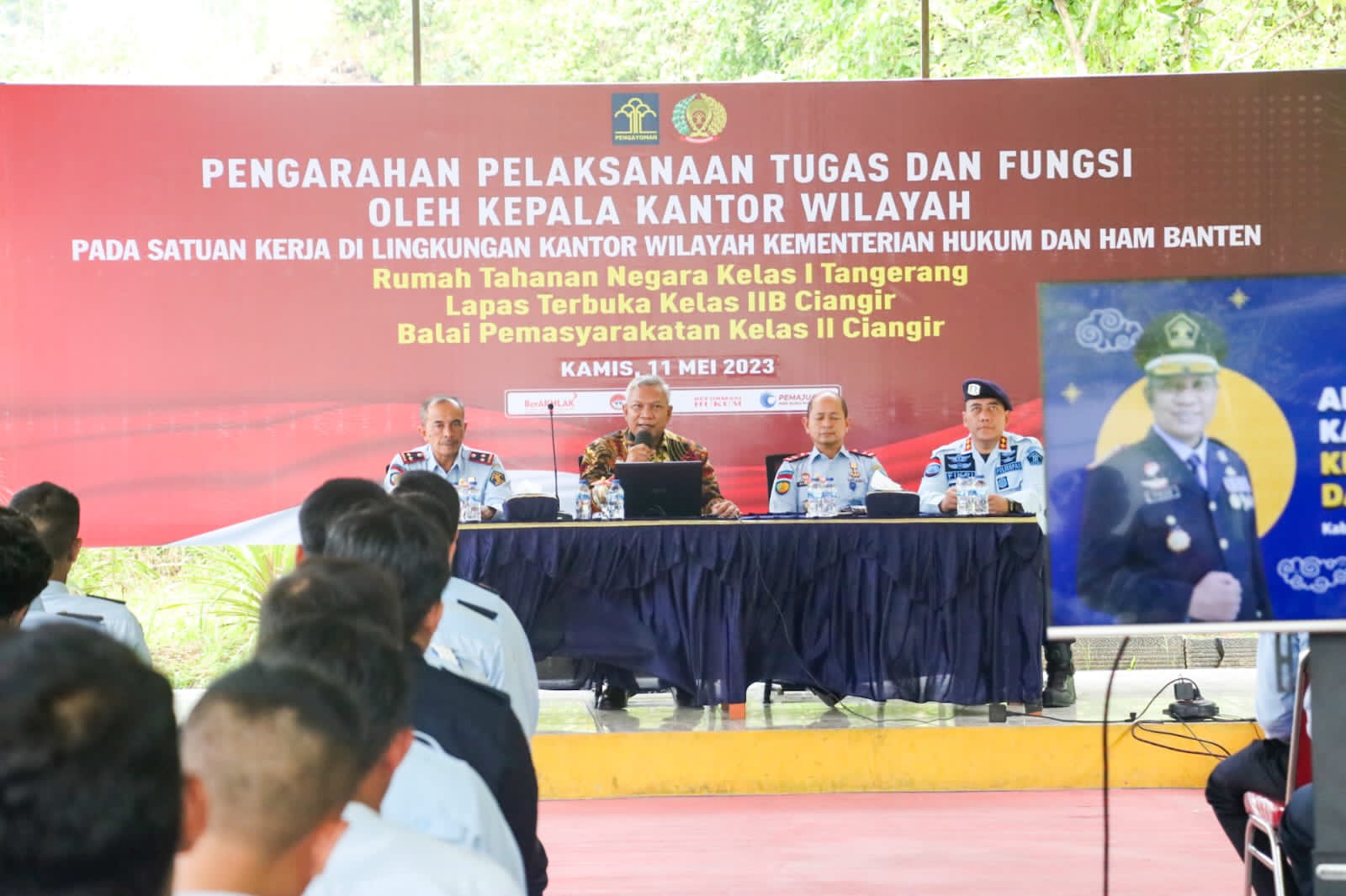 Kab. Tangerang, (Haluanbanten.co.id) – Hadir di Rutan Kelas I Tangerang, Kepala Kantor Wilayah Kementerian Hukum dan HAM Banten,Tejo Harwanto berikan pengarahan pelaksanaan tugas dan fungsi kepada jajaran Rutan Kelas I Tangerang, Lapas Terbuka Kelas IIB Ciangir dan Bapas Kelas II Ciangir.