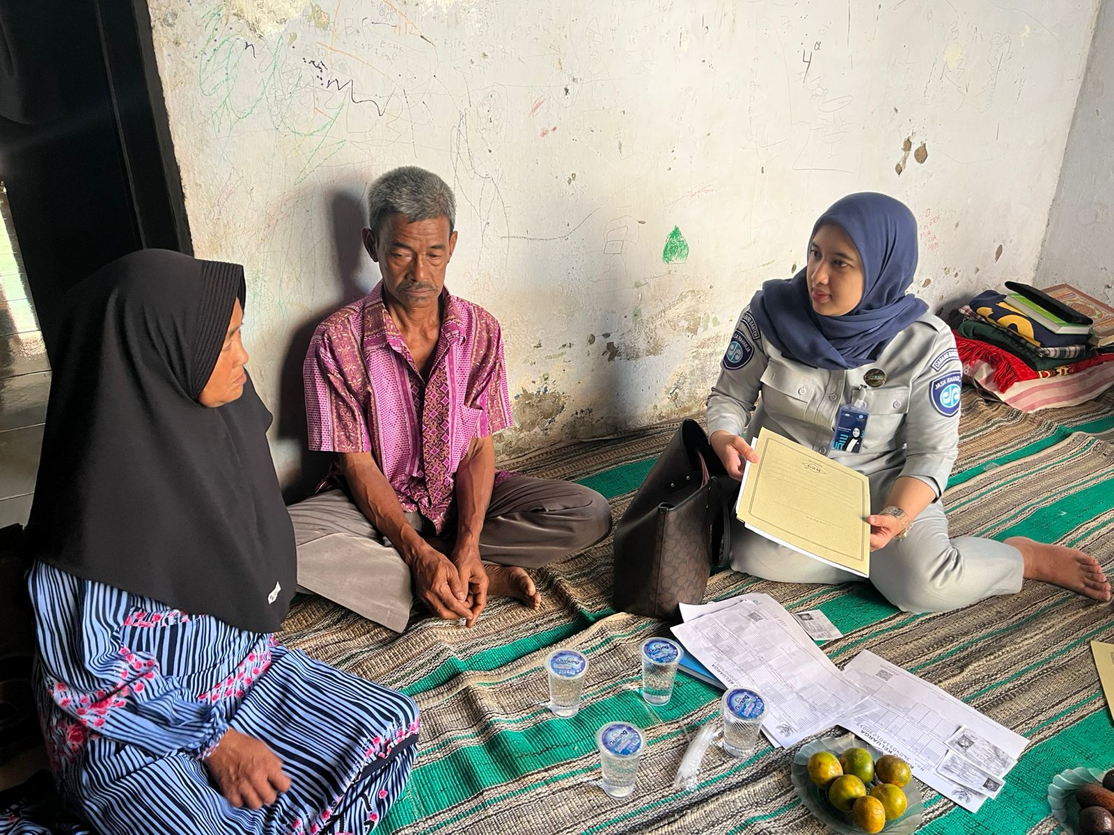 Serang, (haluanbanten.co.id) – Suasana duka masih terasa di kediaman Almarhumah Sukandar korban meninggal dunia akibat Laka Lantas di Jalan Raya Cilegon Tepatnya di link.Kedaleman, Kelurahan Cibeber Kecamatan Cibeber Kota Cilegon. Risa Puspita selaku petugas Jasa Raharja Samsat Kramatwatu yang mewakili PT Jasa Raharja Cabang Banten pada hari Selasa, 16 Mei 2023 melaksanakan survey keabsahan ahli waris juga turut berbela sungkawa atas meninggalnya Almarhum Sukandar. Kedatangan Petugas Jasa Raharja Samsat Kramatwatu diterima langsung oleh Orang Tua Kandung korban selaku ahli waris yang sah yaitu Ayah Hayani dan Ibu Kamsiyah.