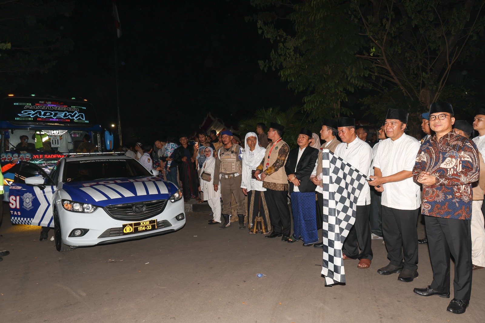Penjabat (Pj) Gubernur Banten Al Muktabar melepas Kelompok Terbang (Kloter) 2 Jamaah Haji Provinsi Banten atau Kloter 05 CGK embarkasi Bandara Soekarno-Hatta asal Kota Serang. Pelepasan dilaksanakan di Pusat Pemerintahan Kota Serang di Kawasan Perumahan Kota Serang Baru, Banjaragung, Cipocok Jaya, Kota Serang, Rabu (24/5/2023) dini hari.