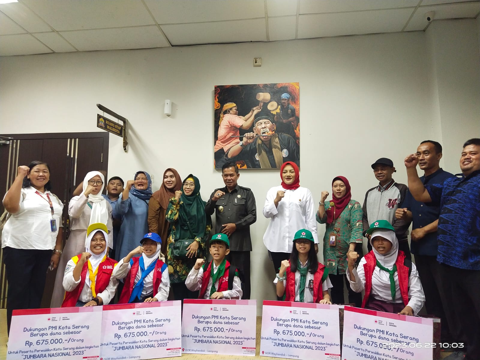 SERANG, (haluanbanten.co.id) – Kontingen Palang Merah Remaja (PMR) Kota Serang sambangi ruang kerja Walikota Serang Syafrudin, kedatangan tersebut untuk meminta arahan sekaligus pelepasan Jumpa Bakti Gembira (JUMBARA) Nasional ke-IX yang akan dilaksanakan di Lampung pada tanggal 2 hinggal 10 Juli mendatang.