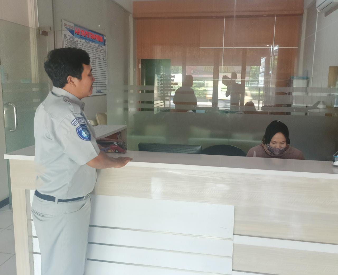 Tangerang, (haluanbanten.co.id) – Penanggung Jawab Jasa Raharja SAMSAT Cikokol Ahmad Arif Staff Bersama Staff Administrasi Tk. I SAMSAT Jatiuwung Irwansyah petugas Jasa Raharja Perwakilan Tangerang Cabang Banten lakukan kunjungan ke PO Arya Putra Prima yang berdomisili di Wilayah Cikokol Kota Tangerang Banten