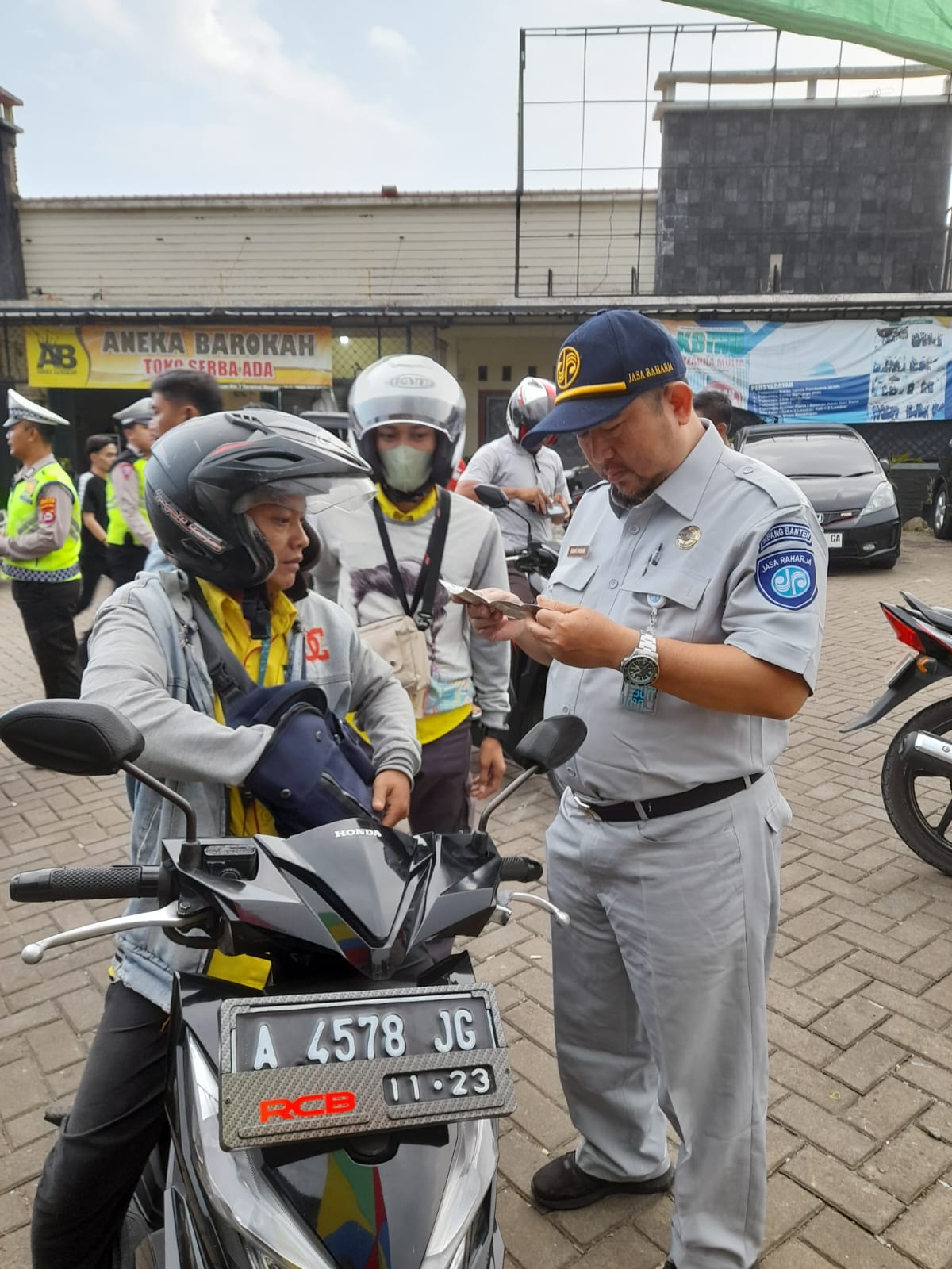 Pandeglang, (haluanbanten.coi.id) – Petugas Jasa Raharja Samsat Saketi Denny Pribadi melakukan giat penertiban gabungan pajak kendaraan bermotor sebagai salah satu upaya untuk peningkatan kepatuhan masyarakat dan mengurangi tunggakan dalam pembayaran Pajak Kendaraan Bermotor (PKB) dan Sumbangan Wajib Dana Kecelakaan Lalu Lintas (SWDKLLJ) pada hari selasa 25/07/2023, dalam kegiatan ini juga dilakukan sosialisasi UU no 22 tahun 2009 Pasal 74 tentang penghapusan data kendaraan bermotor dari daftar registrasi dan identifikasi kendaraan bermotor apabila tidak melakukan pembayaran pajak setelah 2 tahun STNK mati.