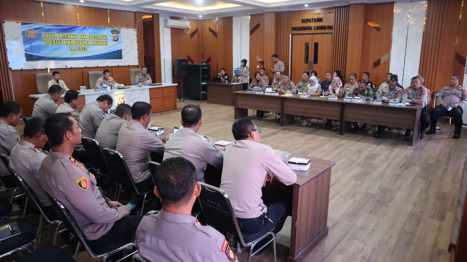 SERANG, (haluanbanten.ci.id) – Jajajaran Polres Serang Polda Banten menggelar rakor internal dan eksternal dalam rangka Operasi Bina Kusumah Maung II tahun 2023 diaula rupatama Polres Serang, Selasa (1/8/2023).