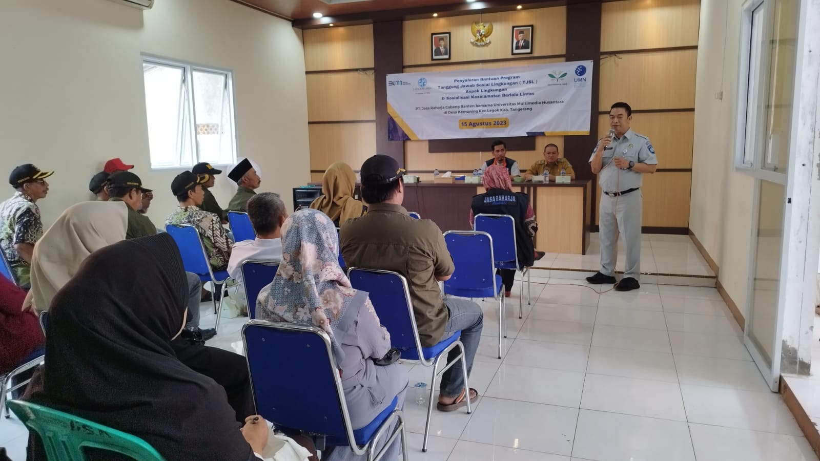 Kegiatan ini diarahkan langsung oleh Kepala Perwakilan PT Jasa Raharaja Perwakilan Tangerang Cabang Banten Hastuti menjelaskan bahwa salah satu tujuan kegiatan sosialisasi ini adalah agar masyarakat dapat lebih memahami tentang aturan yang telah dikeluarkan pemerintah dalam hal ini yang ditugaskan kepada PT. Jasa Raharja.