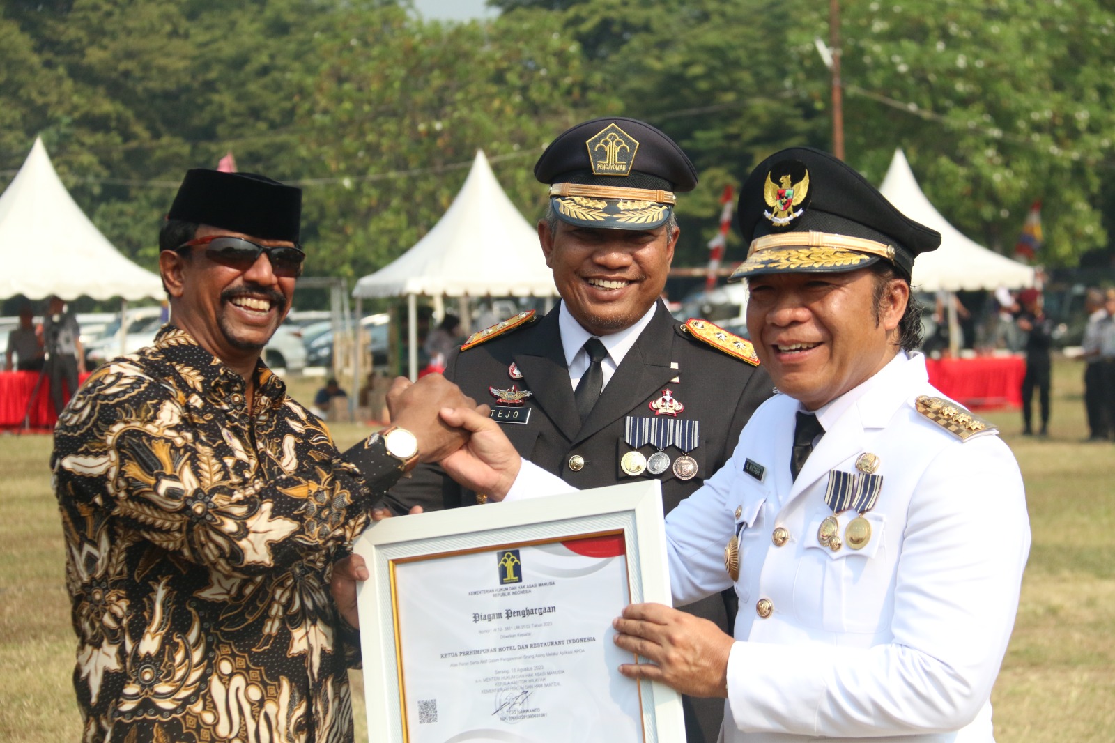 Tak ketinggalan dalam momen istimewa ini, Kanwil Kemenkum HAM Banten juga memberikan penghargaan kepada para mitra strategis Kemenkumham Banten yang salah satunya adalah Ketua PHRI BPD Banten GS. Ashok Kumar.