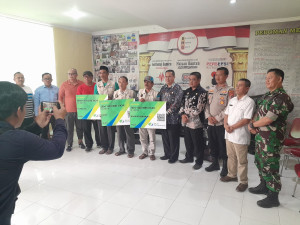 Perlindungan ini ditandai dengan penyerahan secara simbolis kartu BPJS Ketenagakerjaan dan rompi kepada perwakilan marbot masjid di kantor redaksi Bangun Media Group. Jumat, (01/09).