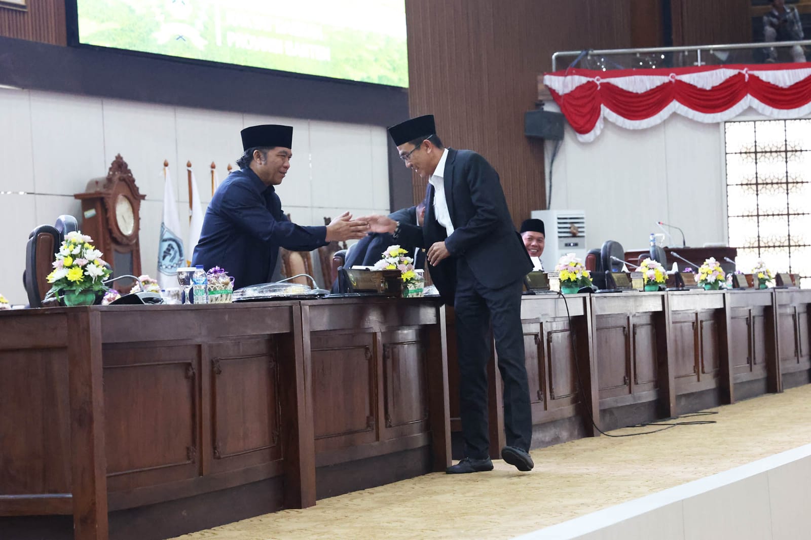 Penjabat (Pj) Gubernur Banten Al Muktabar menghadiri rapat paripurna pemandangan umum fraksi-fraksi terhadap nota pengantar Gubernur mengenai Raperda tentang Perubahan APBD Provinsi Provinsi Banten Tahun Anggaran 2023, di ruang paripurna DPRD Banten, KP3B, Kota Serang (19/9/2023).