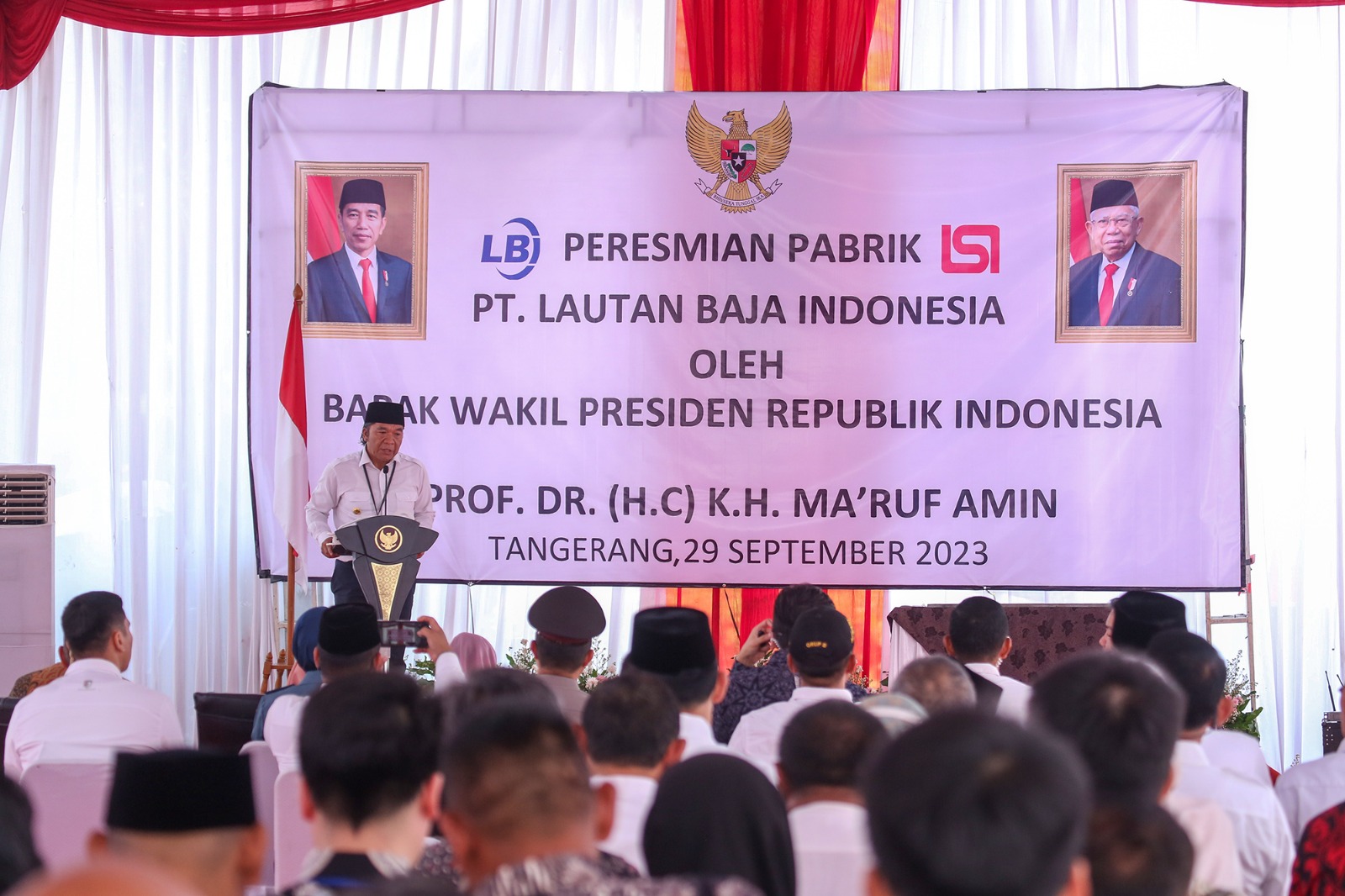 Penjabat (Pj) Gubernur Banten Al Muktabar mendampingi Wakil Presiden RI KH Ma’ruf Amin meresmikan pabrik baja PT. Lautan Baja Indonesia (LBI). Pabrik baja ini merupakan ekspansi dari PT. Lautan Steel Indonesia di Telagasari, Kecamatan Balaraja, Kabupaten Tangerang, Jum’at (29/9/2023).