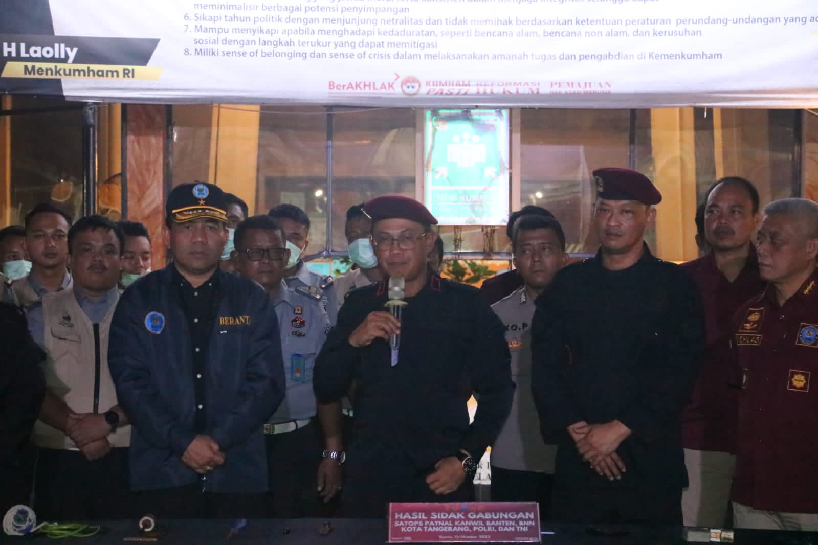 Tangerang, (Haluanbanten.co.id) – Tim Satuan Operasional Kepatuhan Internal(SATOPSPATNAL) Divisi Pemasyarakatan Kantor Wilayah Kemenkumham Banten Gelar Sidak Gabungan yang turut melibatkan BNN Provinsi Banten, BNN Kota Tangerang serta TNI dan Polri, Sidak Gabungan kali ini dilaksanakan di Lembaga Pemasyarakatan Pemuda Kelas IIA Tangerang pada Jum’at Dini Hari(13/10/2023)