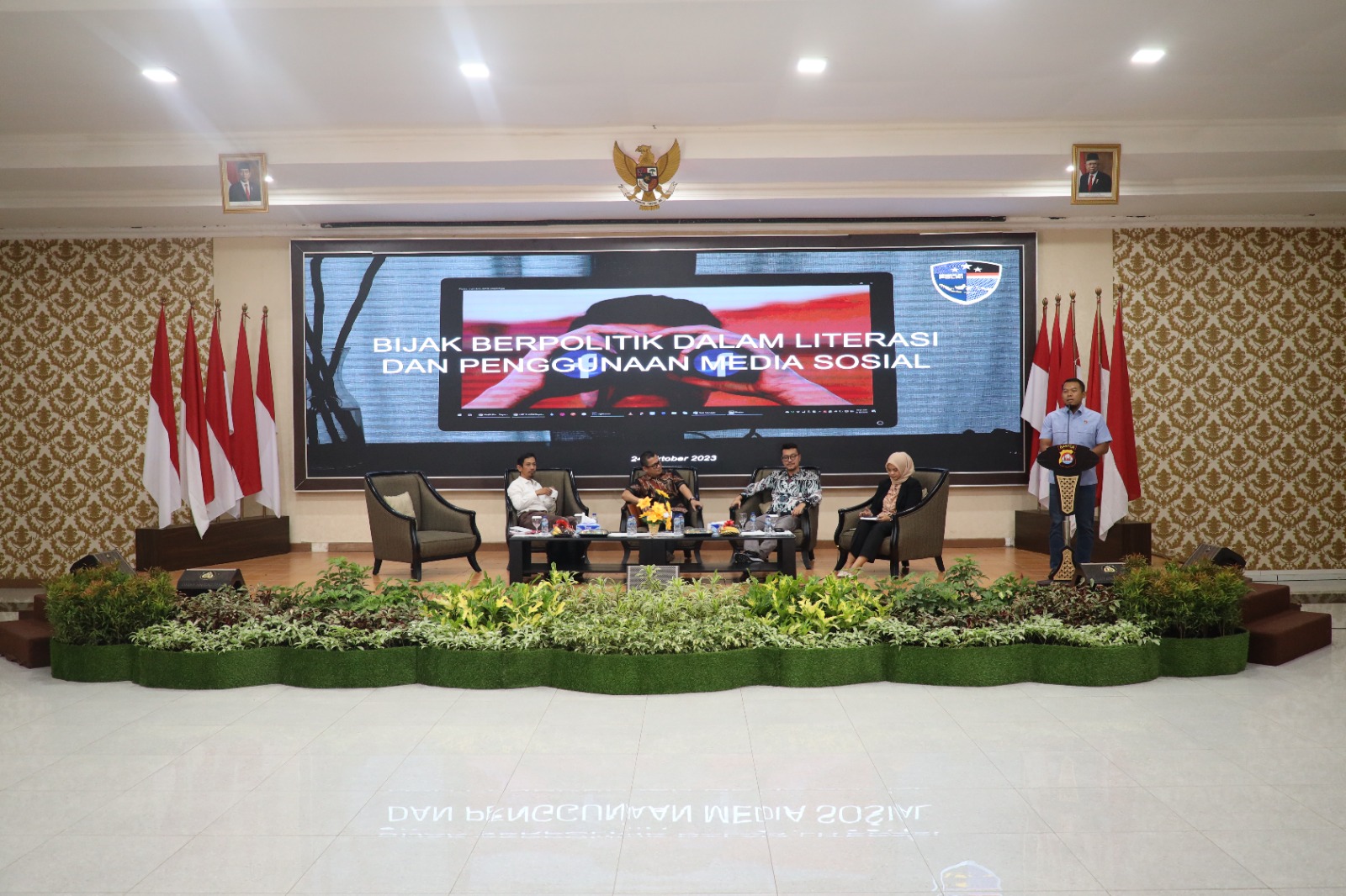 SERANG, (Haluanbanten.co.id) – Bidang Hubungan Masyarakat (Bidhumas) Polda Banten menggelar kegiatan Dialog Publik dengan tema Bijak Bermedia Sosial Agar Tidak Menjadi Korban Digital, Wujudkan Pemilu Sebagai Sarana Integrasi Bangsa Menuju Indonesia Maju, bertempat di Aula Serbaguna Polda Banten pada Selasa (24/10) sekitar pukul 08.30 WIB.