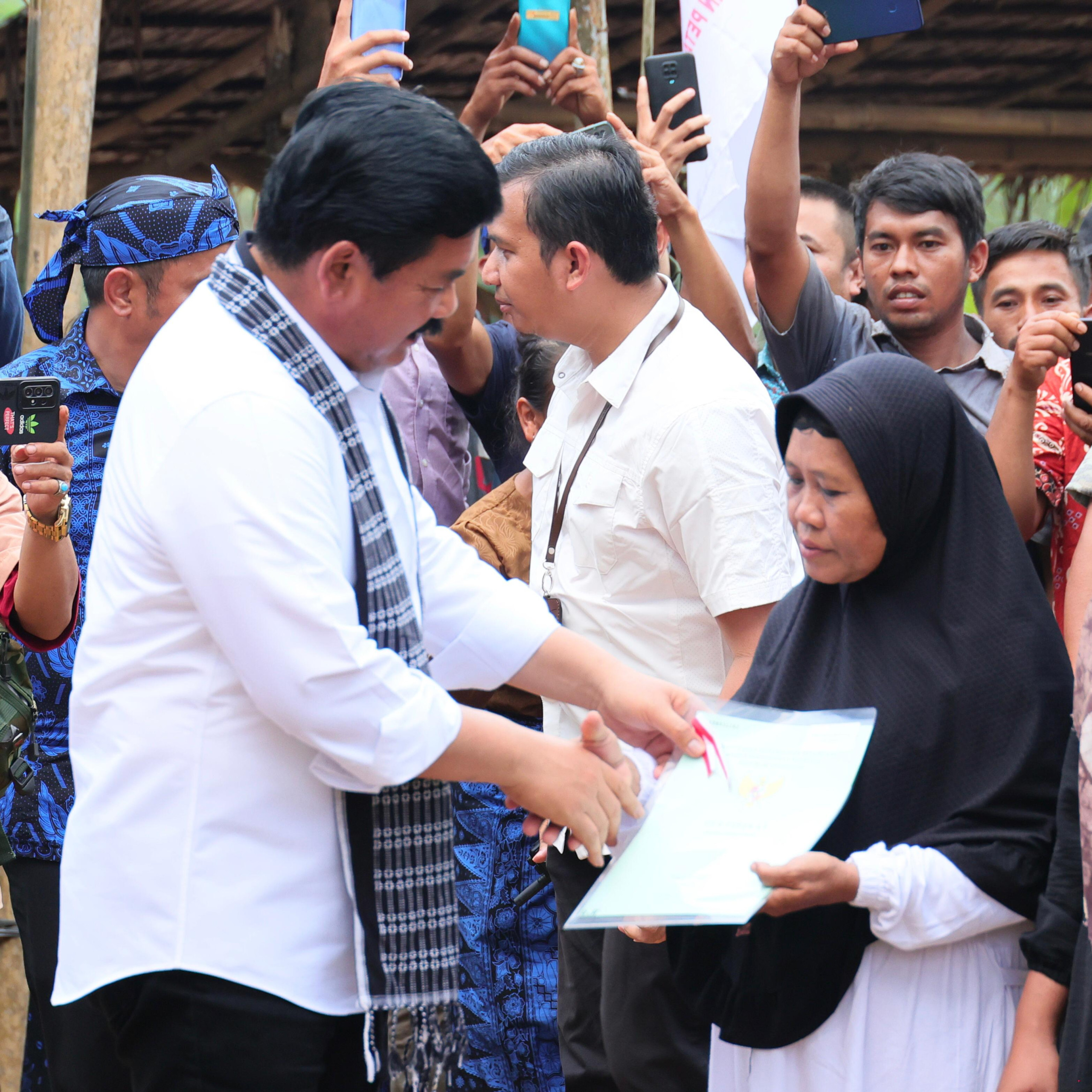 Lebak, (Haluanbanten.co.id) – Menteri Agraria dan Tata Ruang/Kepala Badan Pertanahan Nasional (ATR/BPN), Hadi Tjahjanto menyerahkan 12 sertipikat yang diperuntukkan untuk 195 warga di Gunung Anten, Kabupaten Lebak, Banten, pada Jumat (27/10/2023). Sertipikat tersebut merupakan hasil dari program Reforma Agraria.