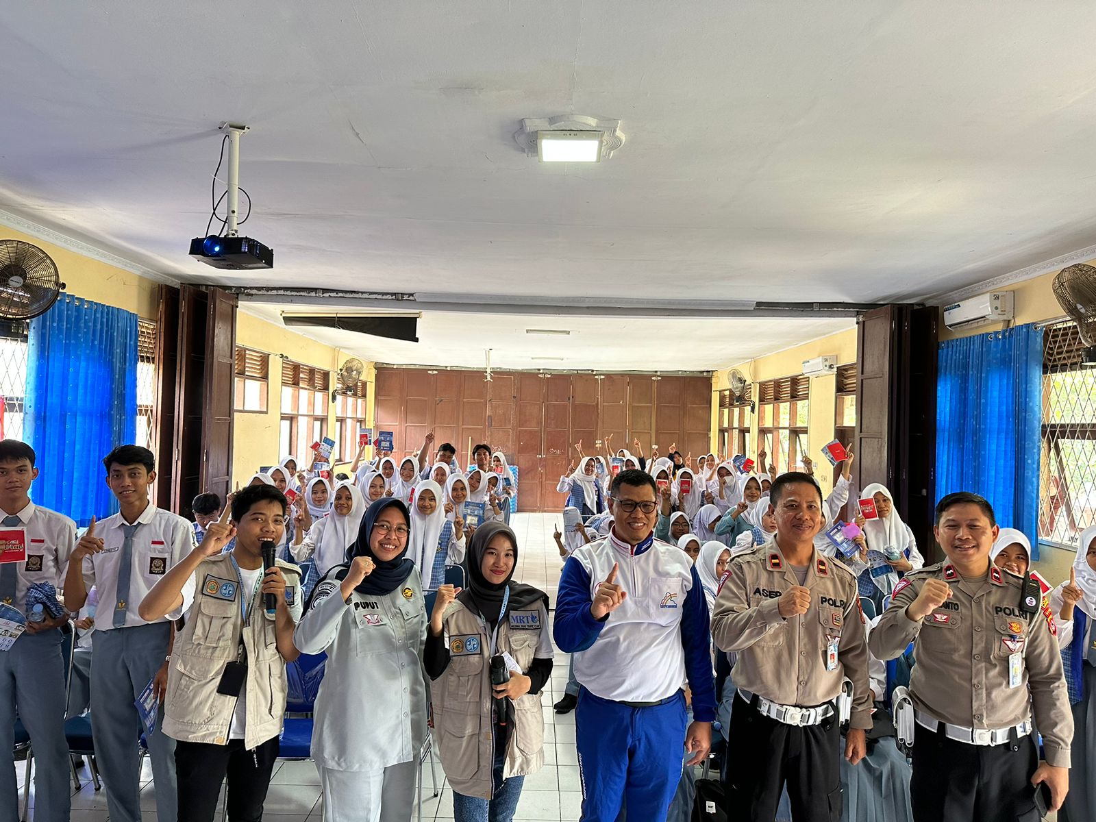 Kegiatan ini berfokus pada sosialisasi tentang keselamatan berkendara di jalan raya khususnya bagi pelajar dan guru di sekolah.