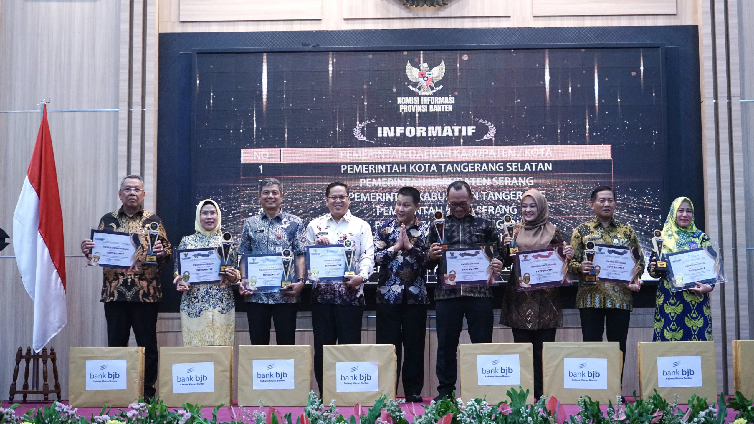 Pemkab Serang hanya berselisih 0,16 poin dari Kota Tangerang Selatan yang meraih peringkat I dengan poin 98,53. Sementara itu, penghargaan diterima langsung oleh Bupati Serang Ratu Tatu Chasanah dari Ketua KI Banten Toni Anwar Mahmud di Pendopo Gubernur Banten, Kamis (16/11/2023).