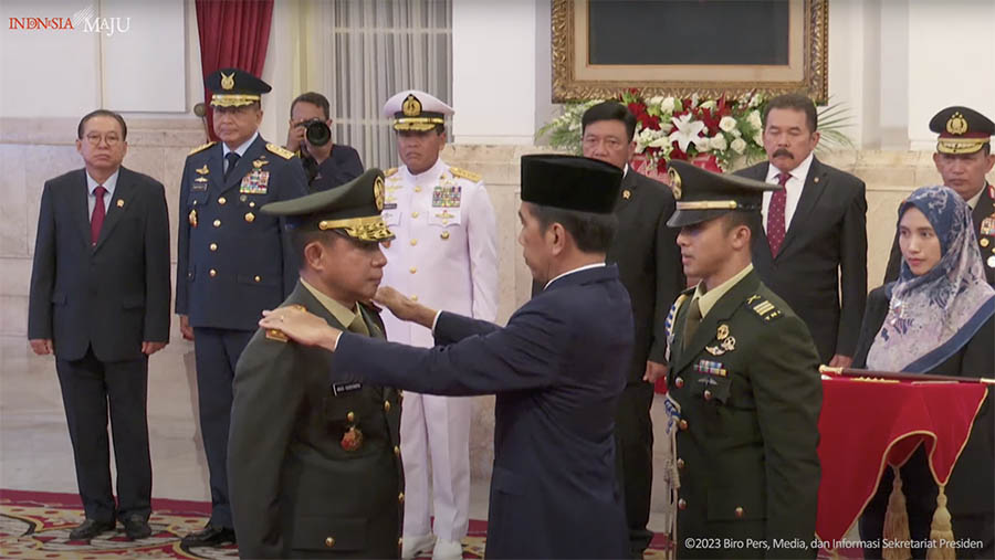 Pelantikan tersebut dilaksanakan berdasarkan Keputusan Presiden Nomor 102/TNI/2023 tentang Pemberhentian dan Pengangkatan Panglima TNI.