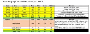 “Dan saat ini, dari keseluruhan pengungsi yang ada yang ditampung di penampungan eks gedung Kantor Imigrasi Kelas II TPI Lhokseumawe ada sebanyak 292 orang dan sedang dalam perjalanan menuju eks gedung Kantor Imigrasi Kelas II TPI Lhokseumawe sebanyak 219 orang pengungsi dari Sabang sehingga jumlah total yang ditampung saat ini akan menjadi 511 orang, sementara sisanya yang berjumlah 573 orang masih tersebar di mina raya kabupaten pidie sebanyak 341 orang, serta di kulee kabupaten pidie sebanyak 232 orang,” tutupnya.