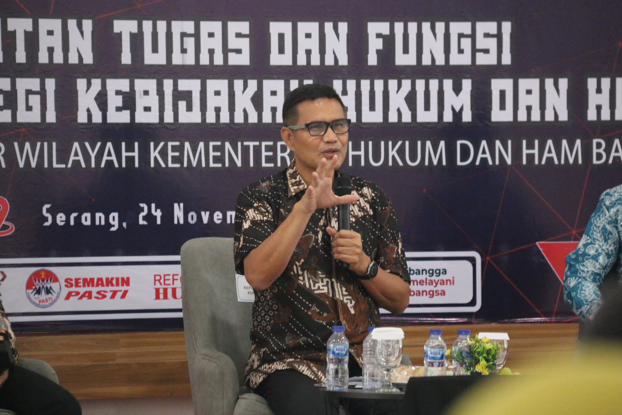 Hal itu diungkapkan Kepala Badan Strategi Kebijakan Hukum dan Hak Asasi Manusia (BSK Hukum dan HAM), Y. Ambeg Paramarta saat memberikan penguatan Tugas dan Fungsi BSK Hukum dan HAM di Kantor Wilayah Kementerian Hukum dan HAM Banten, Jum’at (24/11).