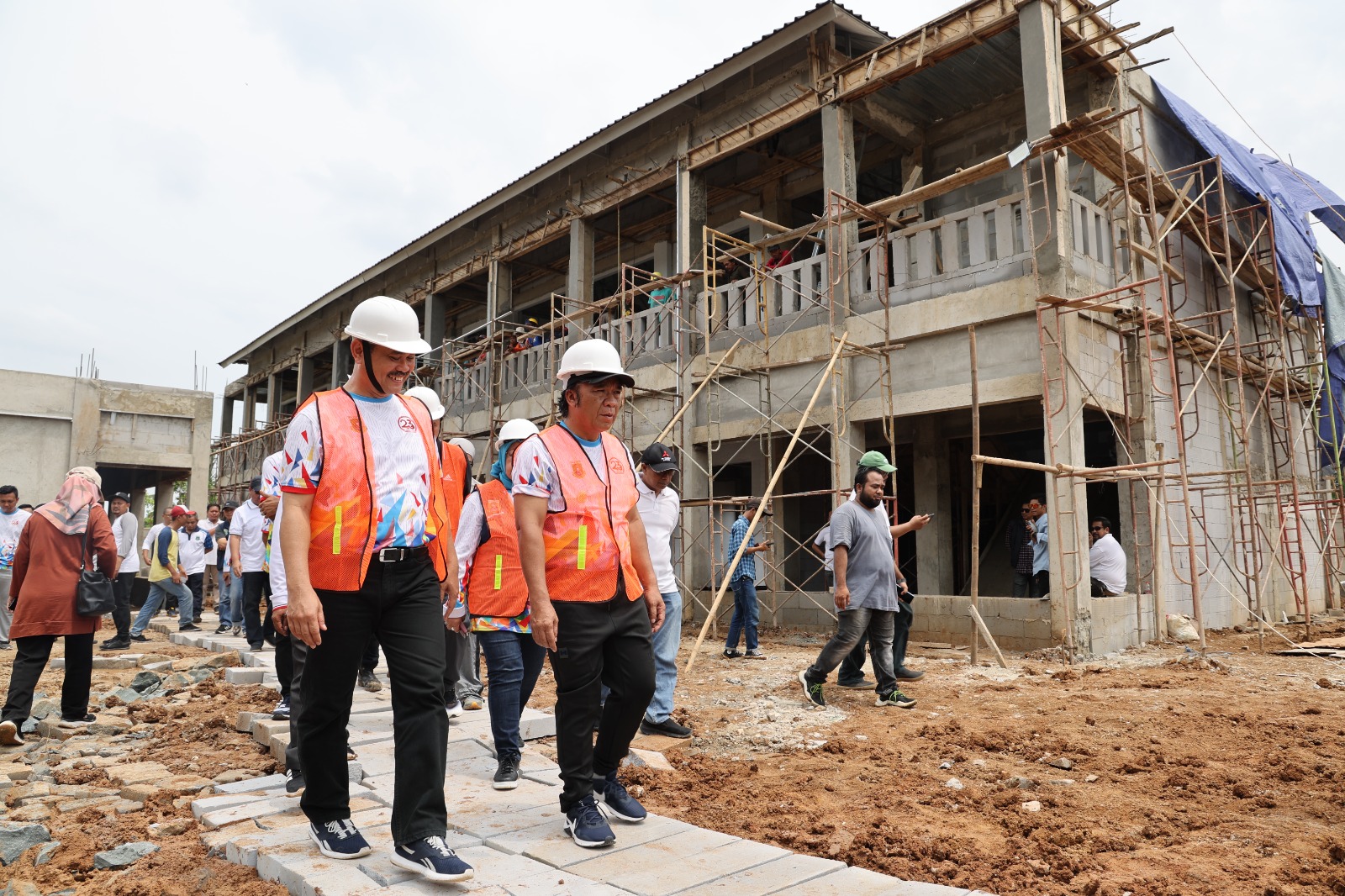 Penjabat (Pj) Gubernur Banten Al Muktabar meninjau progres pembangunan Unit Sekolah Baru (USB) SMAN 4 Rangkasbitung, Minggu (3/12/2023). Akhir tahun 2023, pembangunan SMAN 4 Rangkasbitung ditargetkan selesai. Pada semester kedua 2024 Kegiatan Belajar Mengajar (KBM) bisa memanfaatkan gedung baru.
